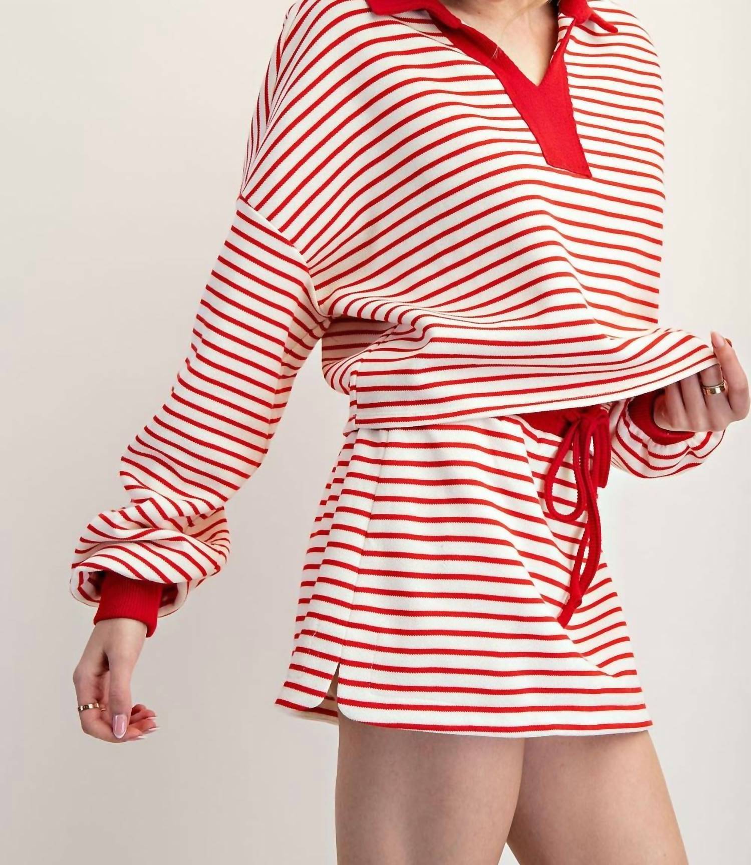 Eesome - Striped Drawstring Mini Skort