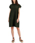 Vestido feminino Eileen Fisher de linho orgânico com gola mandarim e manga curta, verde, tamanho médio