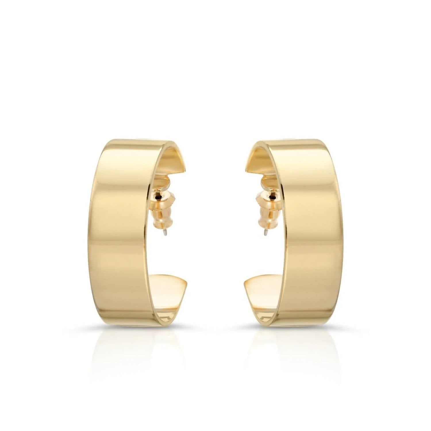 Introducing the 1" Skylar Hoops by Eklexic, a luxurious accessory that combines elegance with sustainability. These hoops are finely handcrafted in the USA from recycled brass, available in exquisite 14K Gold or striking Rhodium finishes. They measure 3/8 inches in width and 1 inch in diameter, offering a classic and refined style suitable for any occasion. Closure: Push back. Elevate your daily wear effortlessly while embracing eco-conscious luxury.