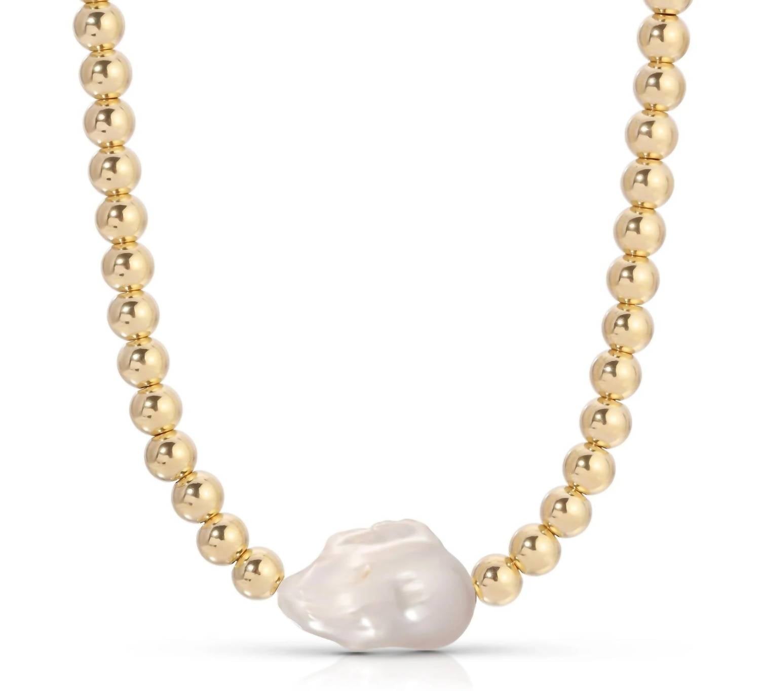 Discreto e impactante, você vai querer esse colar único temporada após temporada. Descubra o encantador Colar Poppy Horizontal de Pérolas e Contas da Eklexic, uma fusão requintada de elegância e versatilidade. Fabricada nos EUA, esta peça requintada apresenta latão reciclado ecológico com deslumbrantes pérolas barrocas de água doce e acabamento deslumbrante em ouro amarelo 14k. As pérolas exclusivas variam de 20 a 23 mm de comprimento e 12 a 14 mm de largura, complementadas por contas de 8 mm, enquanto o colar ajustável de 30 cm vem com um extensor de 10 cm para um ajuste personalizado. Fecho: fecho lagosta.