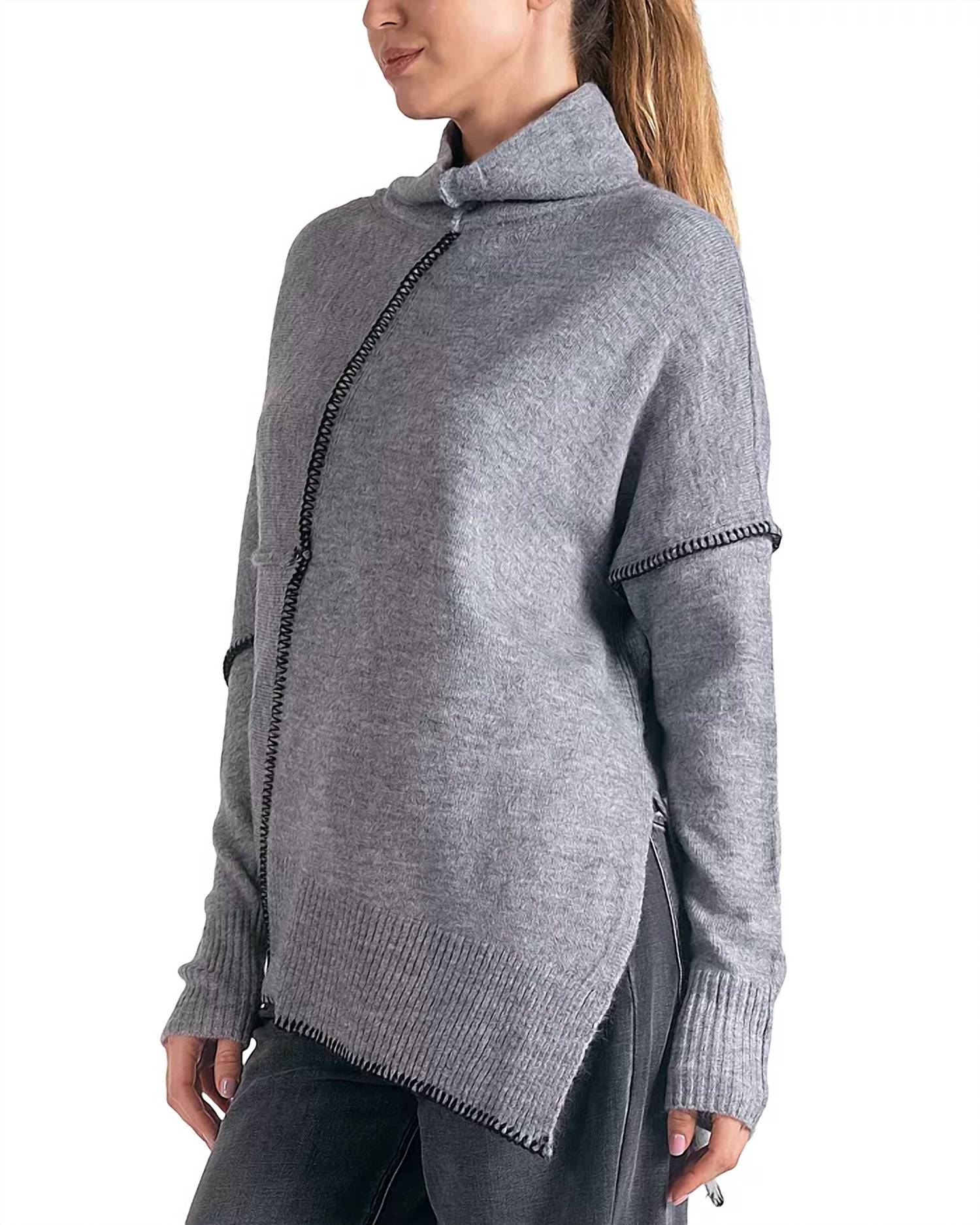Introducing the Asem Sweater by ELAN, a stylish addition to your wardrobe in a chic Heather Grey hue. This women's textured turtleneck sweater features long sleeves and a convenient pull-on closure, perfect for both casual and dressed-up occasions. Crafted from soft Acrylic, it offers comfort and warmth. Care for this piece is simple with machine wash instructions.