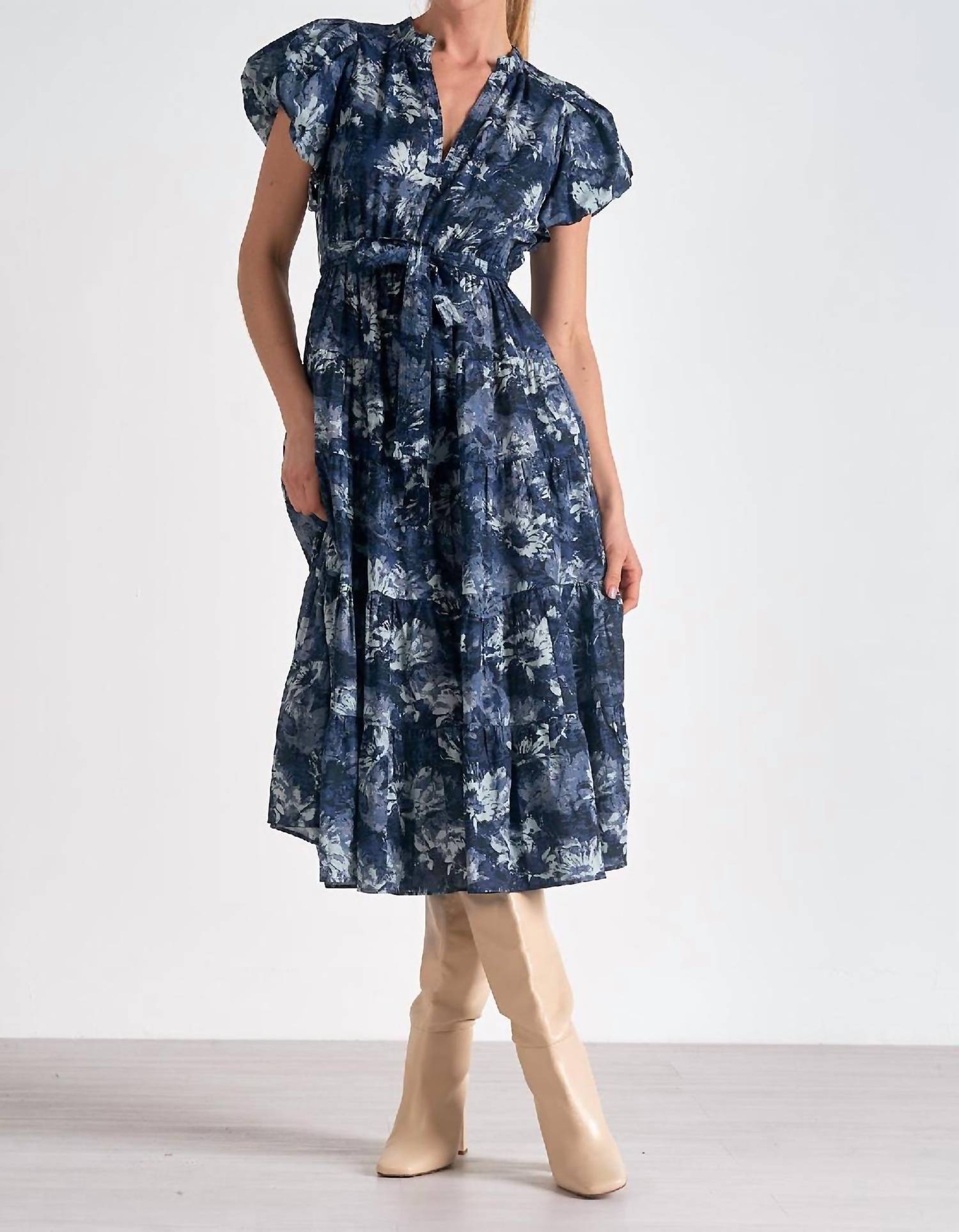 Uma charmosa peça de comprimento midi em azul que combina estilo e conforto. Confeccionado em 100% algodão, este vestido destaca mangas curtas bufantes e um decote em V charmoso. Possui cós elástico prático com cinto removível, permitindo um ajuste personalizado, e inclui bolsos laterais para maior praticidade. Fabricado na China, este vestido oferece fácil cuidado e compatibilidade com lavagem à máquina.