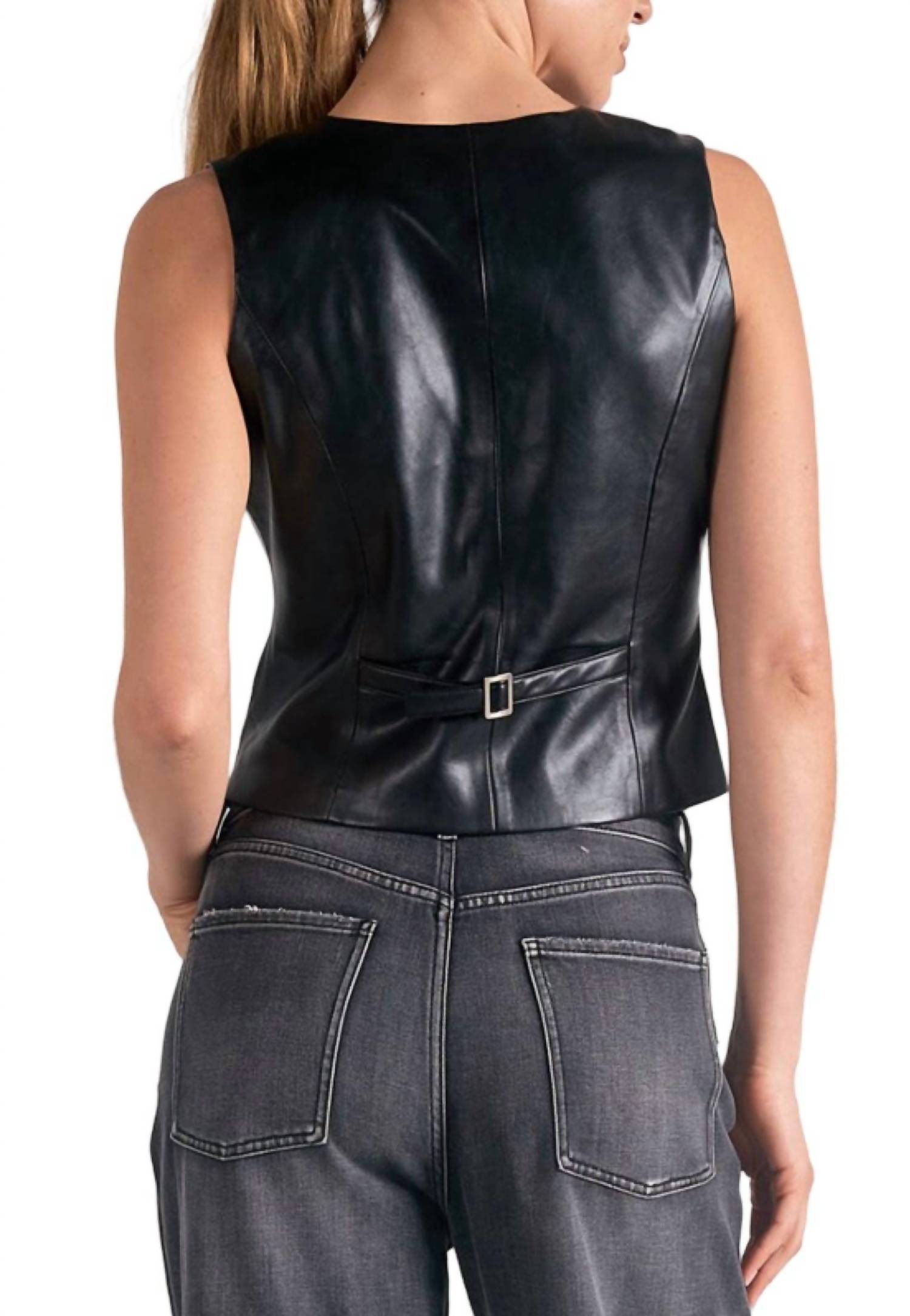 Aquela peça extra que você não sabia que precisava! Este colete com botões frontais é feito de couro vegano com decote em V, fecho de botão, design sem mangas e bolsos práticos, oferecendo um visual elegante e versátil.