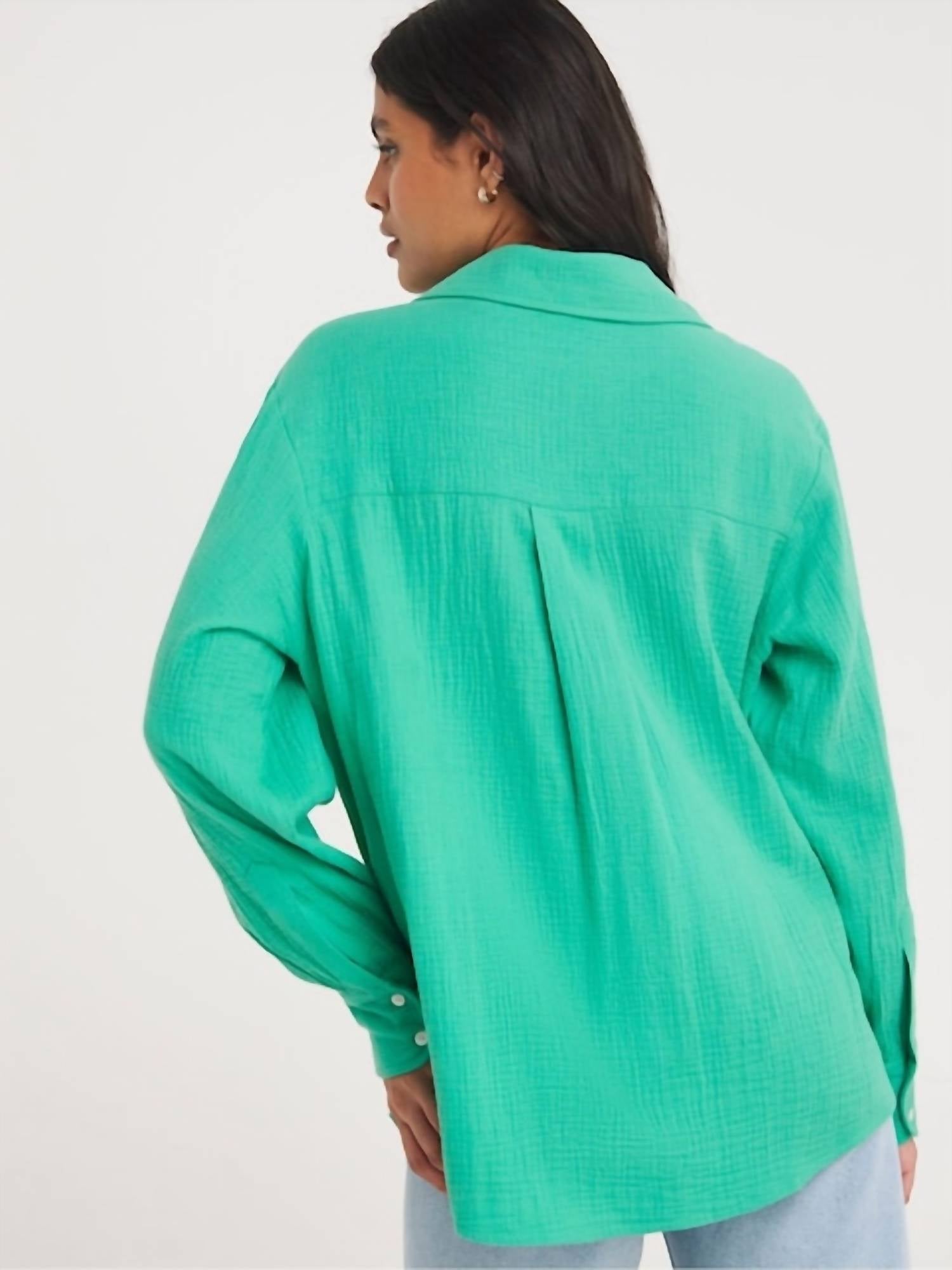 Esta camisa de botões é confortável e elegante. Apresentamos a Camisa de Algodão da ELAN, uma escolha refinada para quem busca uma camisa verde atemporal. Esta camisa possui mangas compridas e é confeccionada em algodão macio para maior conforto. Fechamento: Botão. Cuidados: Lavar à máquina.