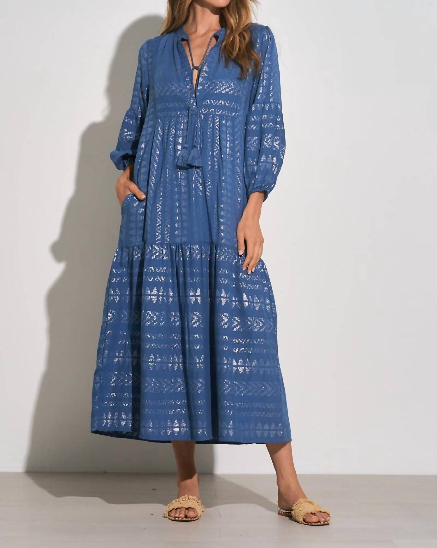 Um vestido midi tão versátil que suas opções de uso são infinitas. Eleve seu guarda-roupa com o Vestido Midi Kaftan Coastas da ELAN, uma peça marcante em um tom cativante. Este vestido feminino apresenta um padrão geométrico e uma elegante silhueta em A, completa com decote em V e mangas três quartos. Confeccionado em uma mistura de algodão (47% algodão, 47% viscose e 6% metálico), oferece conforto e estilo sem esforço. Projetado com fecho de puxar, é fácil de usar, tornando-o a escolha ideal para qualquer ocasião. Para manutenção, lave à mão e deixe secar na horizontal.