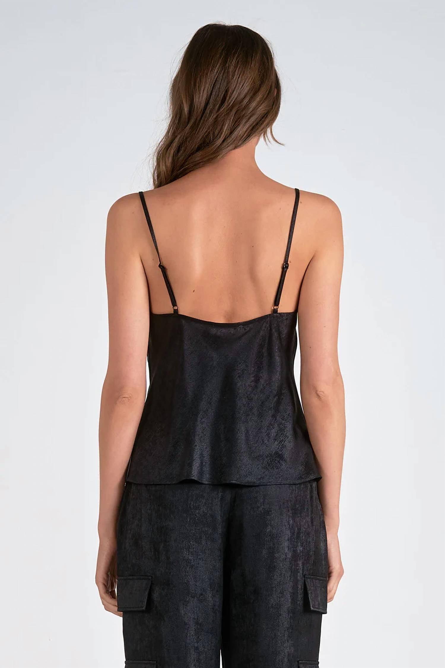 Combine com seu blazer favorito para um visual mais elegante. Eleve seu visual com a Blusa Gola Alta Shimmer da ELAN, uma escolha glamourosa em cetim preto elegante. Esta blusa apresenta alças finas elegantes e um decote cavado sofisticado, proporcionando um estilo chique e sofisticado. Composição: 100% poliéster. Fecho: sem cadarço. Cuidados: Lavar à mão e secar na horizontal. Ideal para adicionar um toque de luxo ao seu conjunto.