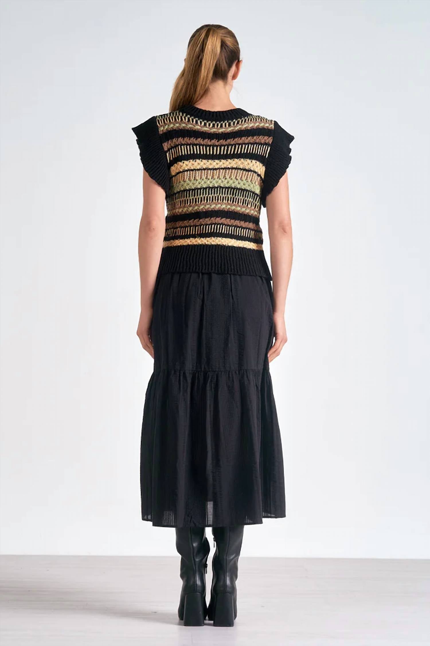 O vestido com o comprimento perfeito existe. Abrace o estilo boho chic com o Vestido Suéter Midi com Gola Redonda da ELAN, artisticamente confeccionado em uma combinação marcante de preto. Este vestido estiloso apresenta mangas curtas e uma construção prática para vestir, completa com bolsos laterais práticos. A blusa apresenta uma mistura de malha suéter de acrílico, algodão e poliéster, enquanto a saia é feita de algodão, oferecendo um estilo misto perfeito para qualquer ocasião. O cuidado é simples, com instruções de lavagem à mão e a recomendação de secar na horizontal, garantindo durabilidade e estilo.