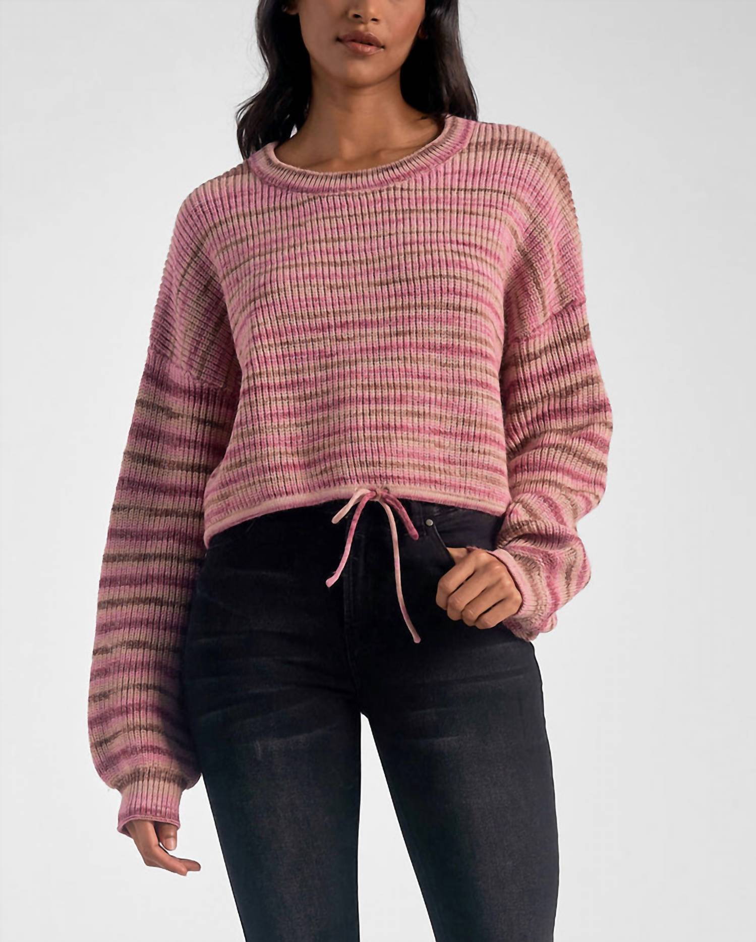 Mantenha-se aquecido e estiloso com esta peça essencial de tricô versátil e despojada. Use-o sozinho ou em camadas, é o suéter perfeito para a estação e você vai desejar tê-lo em todas as cores. Listras multicoloridas. Barra com cordão para amarração. Mangas compridas. Decote redondo. 75% acrílico, 20% poliamida, 5% elastano. Lavagem à mão em condições normais. Não usar alvejante.