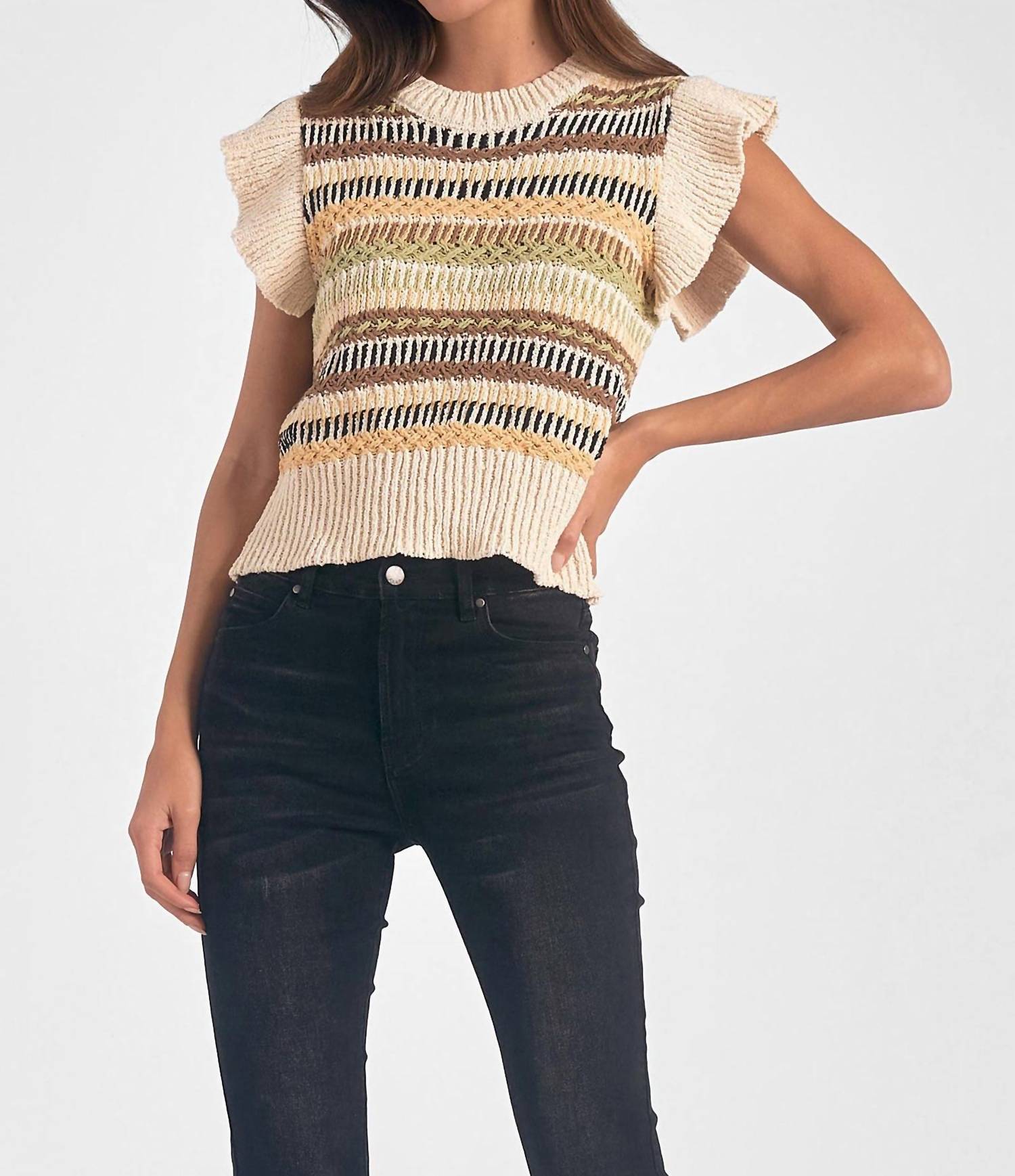 Experimente a combinação perfeita de conforto e estilo com este suéter moderno de gola redonda, projetado para elevar seu guarda-roupa sem esforço. Combine-o com seu jeans e mocassins favoritos para o look perfeito. Apresenta malha listrada leve, mangas com babados e bainha com faixa na parte inferior que valoriza seu corpo. Mede 45 cm de comprimento. 50% algodão, 40% acrílico, 10% poliéster.