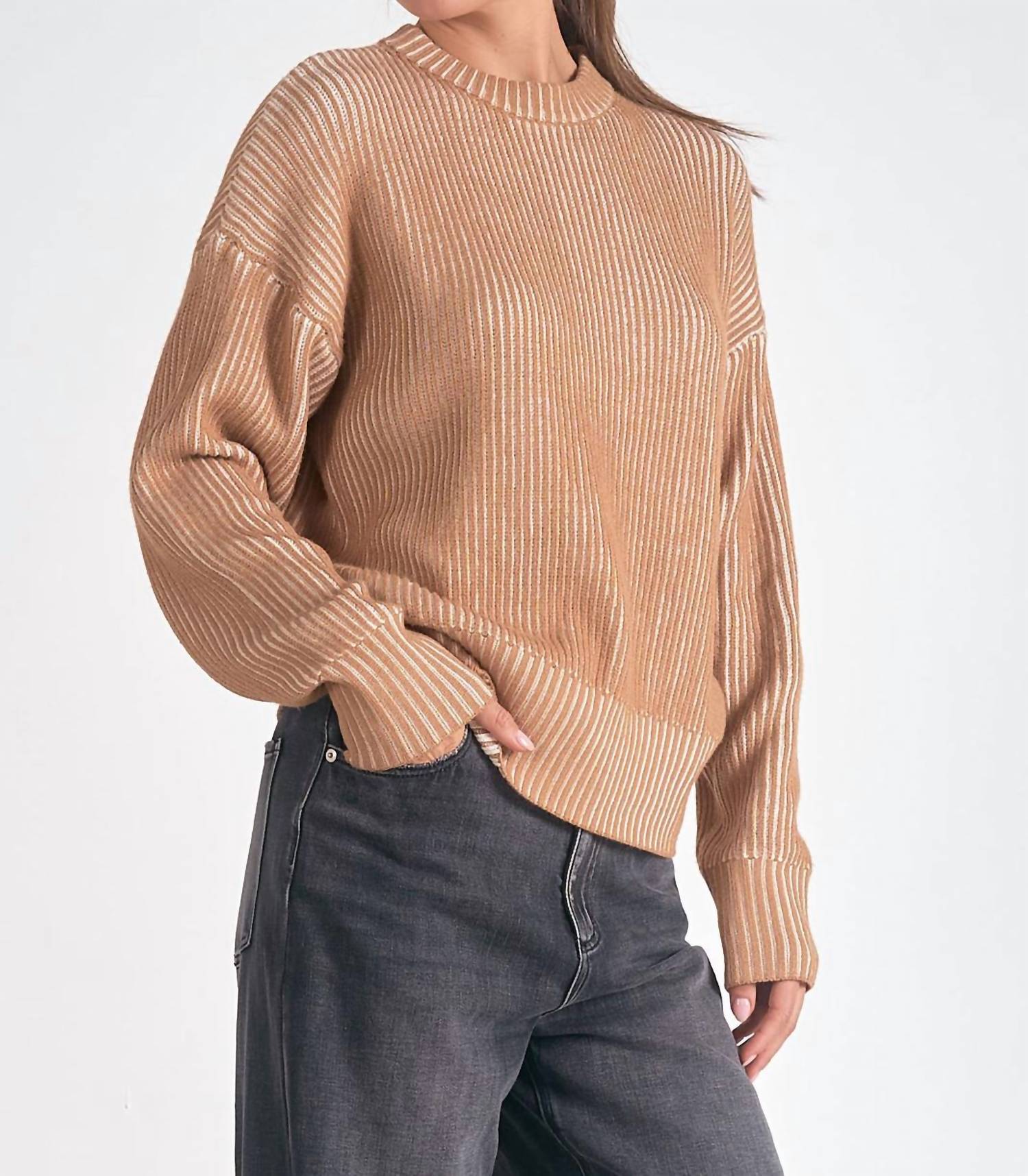 Experimente a combinação perfeita de conforto e estilo com este suéter moderno de gola redonda, projetado para elevar seu guarda-roupa sem esforço. Combine-o com seu jeans e mocassins favoritos para o look perfeito. Descubra o chique sem esforço com o suéter canelado de gola redonda da ELAN, desenvolvido para um caimento elegante e descontraído. Este suéter feminino em tons de marrom ombré e branco apresenta mangas compridas e uma textura canelada visualmente marcante. Confeccionado em uma mistura de 50% viscose, 30% poliamida e 20% poliéster, apresenta gola redonda e mangas com punho. Fechamento: Puxe para vestir.