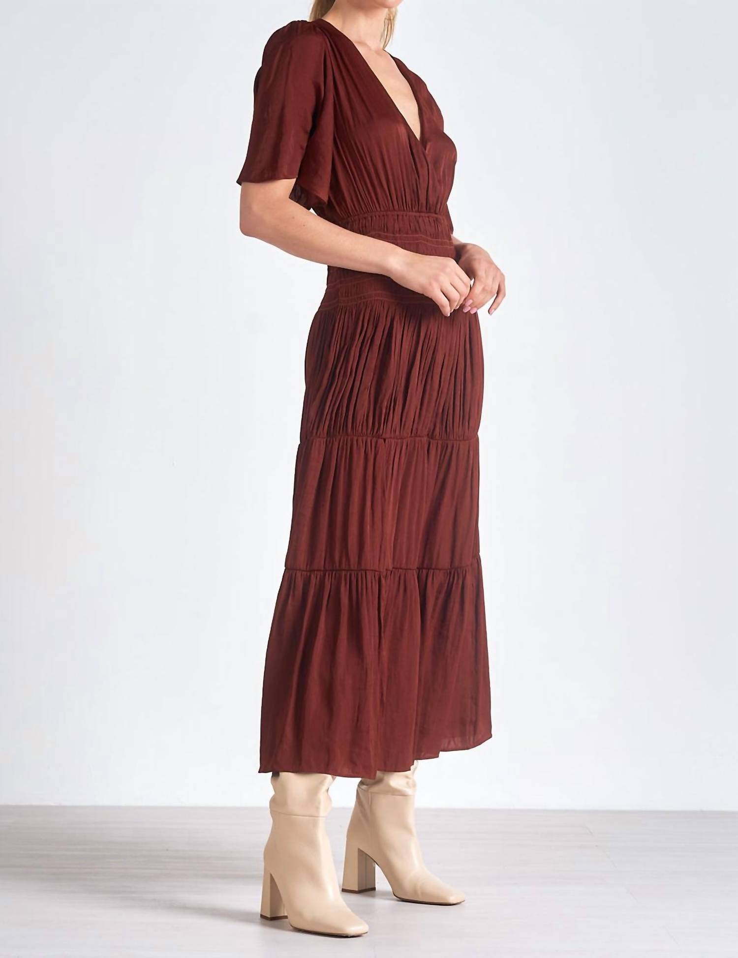 Apresentamos o Vestido Brick da Elan, um elegante vestido em corte A, pensado para mulheres que apreciam elegância. Este vestido midi apresenta mangas curtas três quartos e um decote em V elegante, perfeito para qualquer ocasião. Aproveite a praticidade do fecho pull-on sem o incômodo dos bolsos. Com uma estampa sólida, esta peça é um item essencial para o seu guarda-roupa.