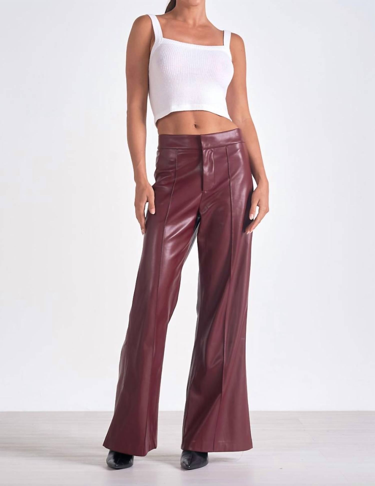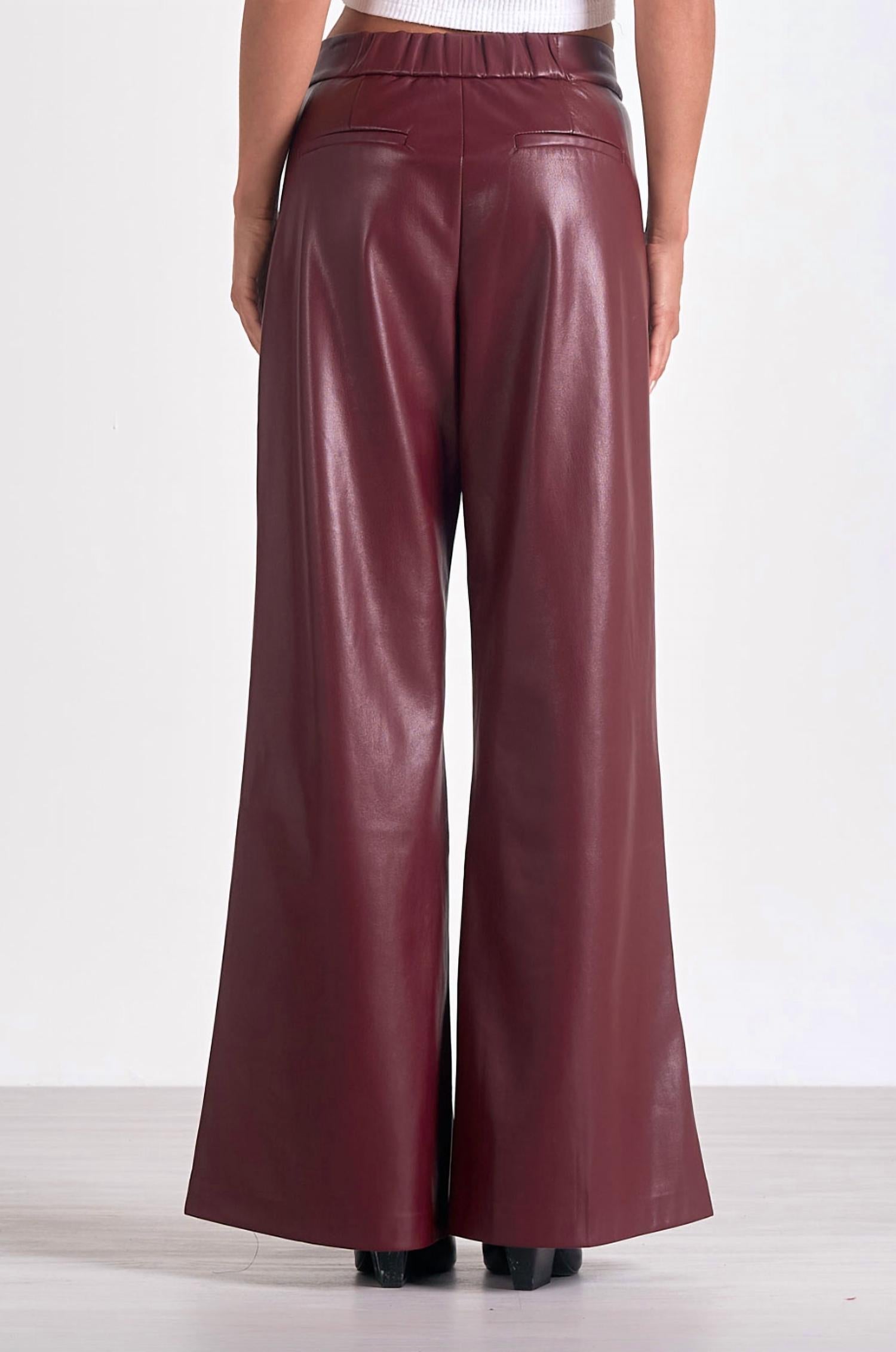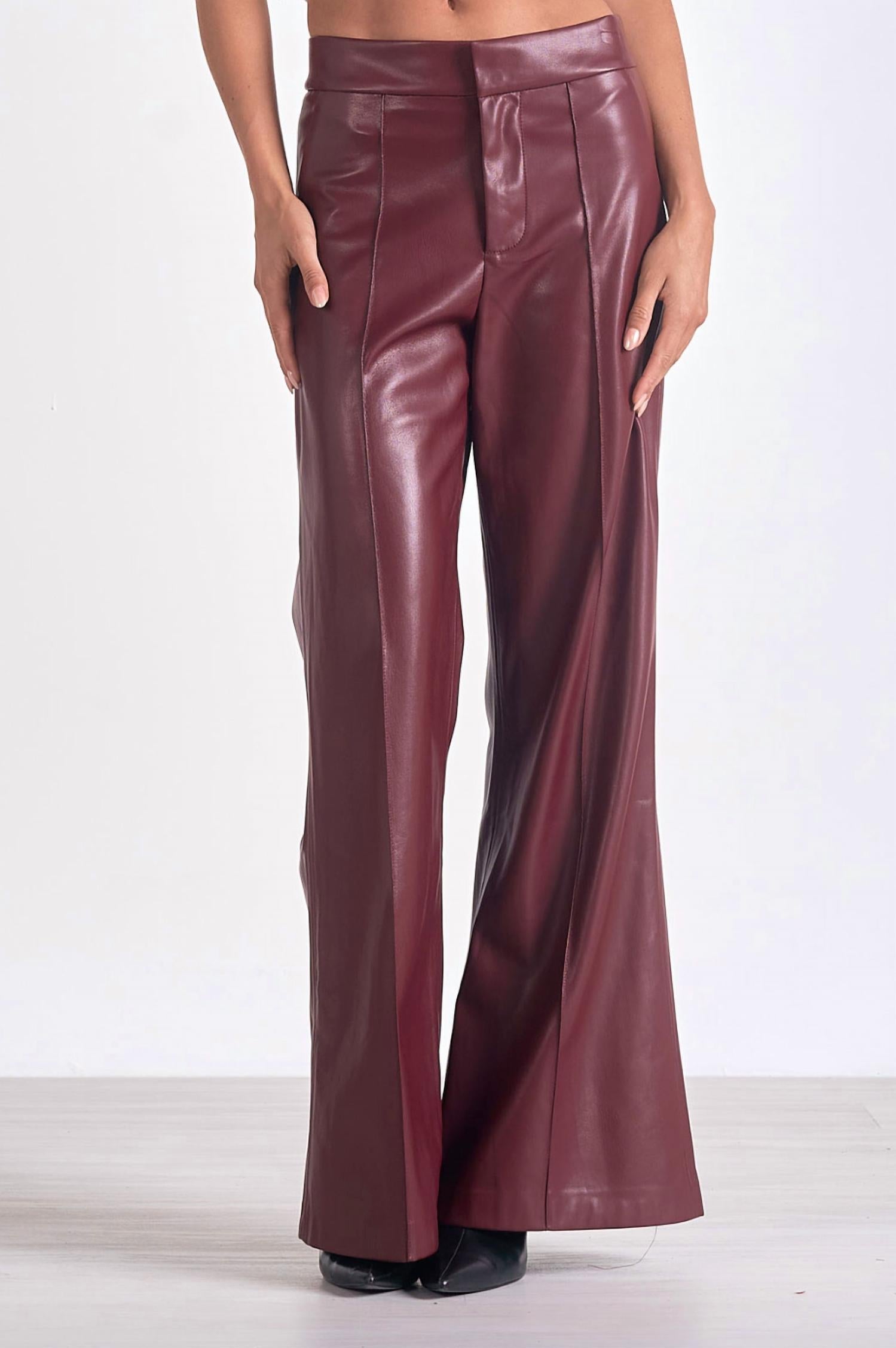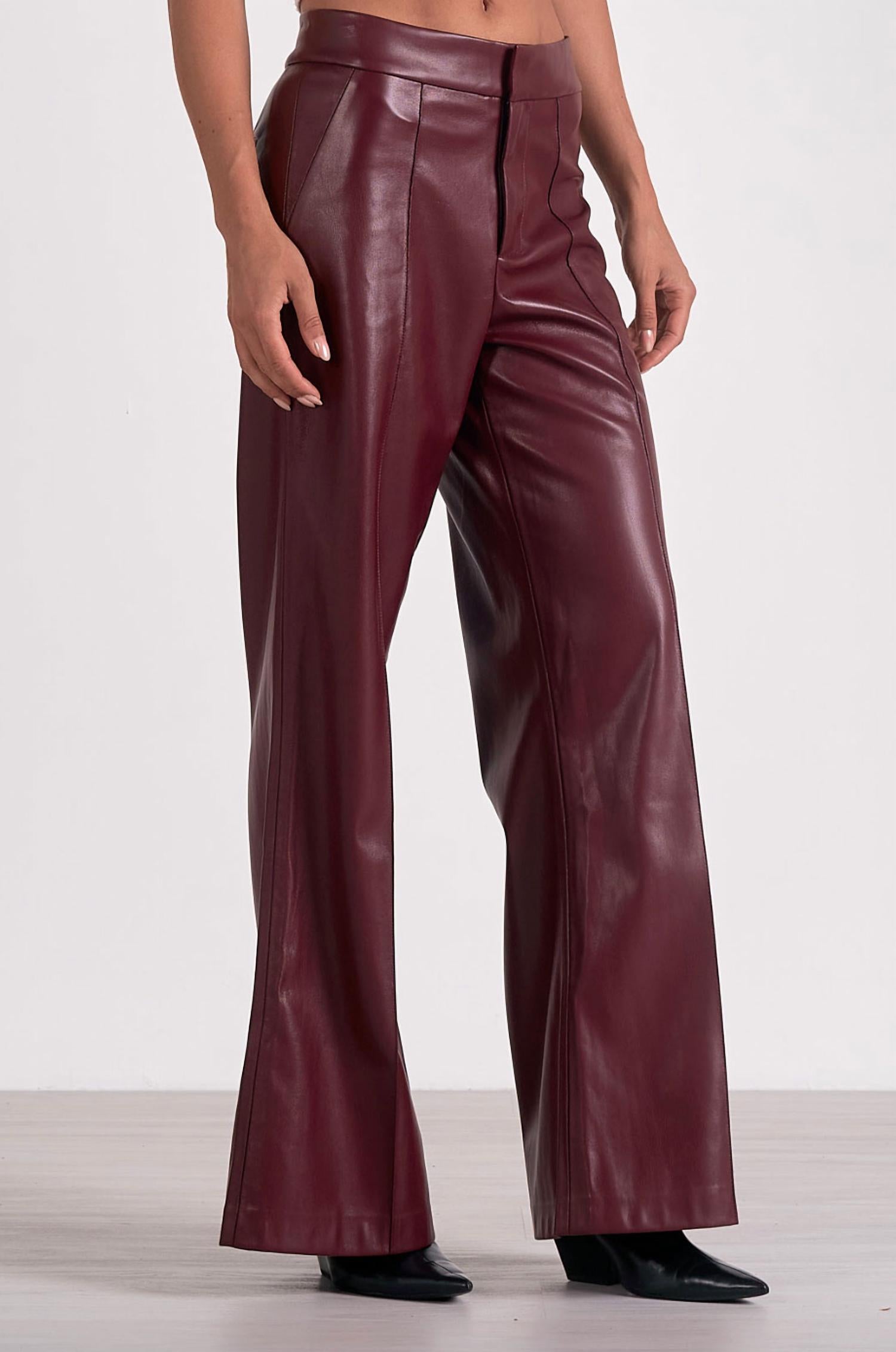 Experimente o toque luxuoso da Calça Larga ELAN em Couro Sintético na elegante cor bordô, projetada para exalar sofisticação. Com um padrão sólido, a calça apresenta um caimento relaxado com cintura alta e estilo de perna larga, perfeita para eventos noturnos ou para abraçar a tendência do luxo discreto. Fechamento: Fechamento por botão. Cuidados: Lavar à mão e secar na horizontal para maior durabilidade.