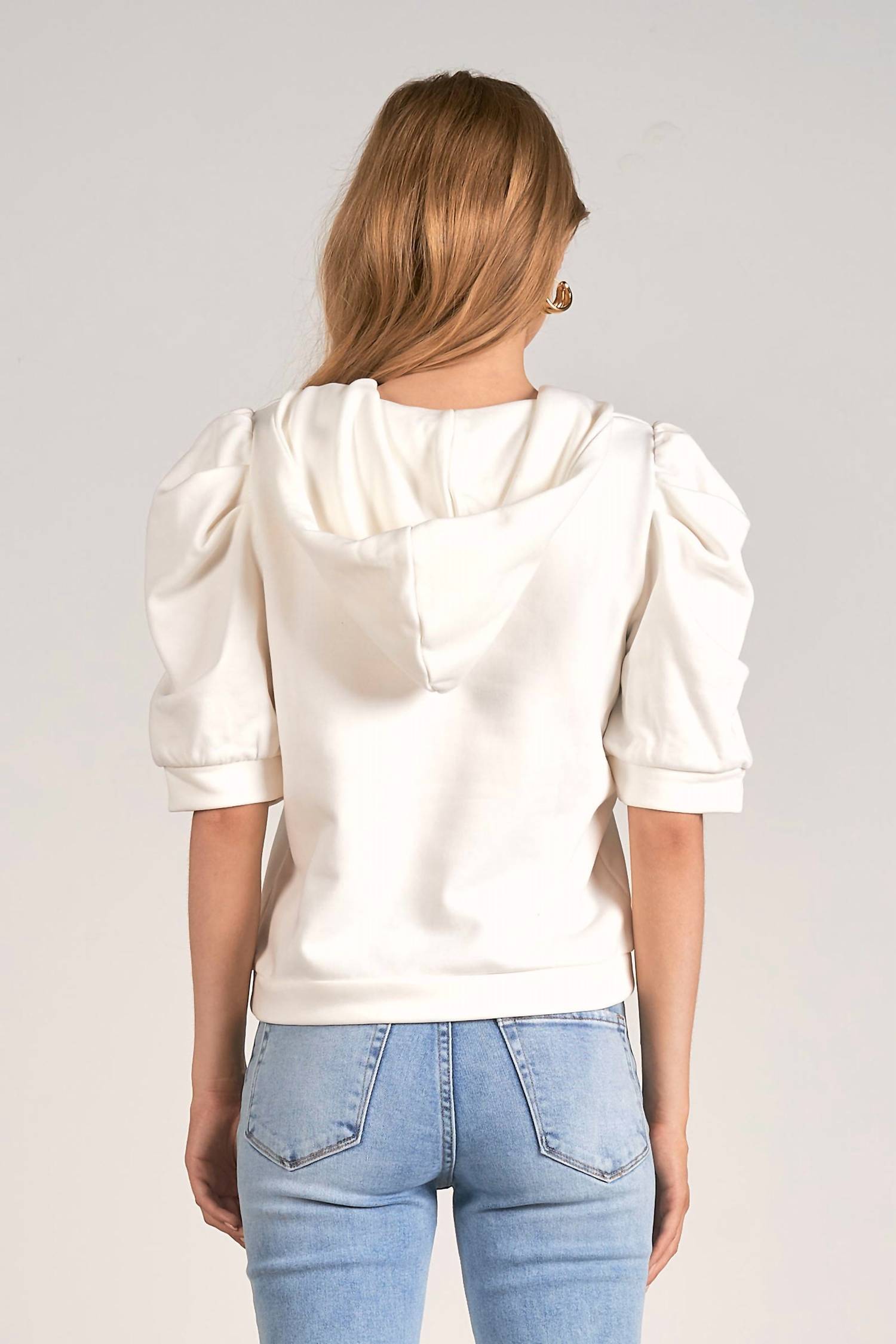 Tecido confortável, design impecável - Conheça o moletom que você nunca mais vai querer tirar. O moletom com capuz feminino ELAN French Terry com mangas bufantes é uma adição elegante ao seu guarda-roupa de outono, perfeito para as férias. Este moletom com capuz branco liso é confeccionado em 100% algodão e possui mangas curtas com um design bufante estiloso. Com um fecho confortável e gola com capuz, ele combina moda e praticidade. Fácil de cuidar, basta lavá-lo na máquina.