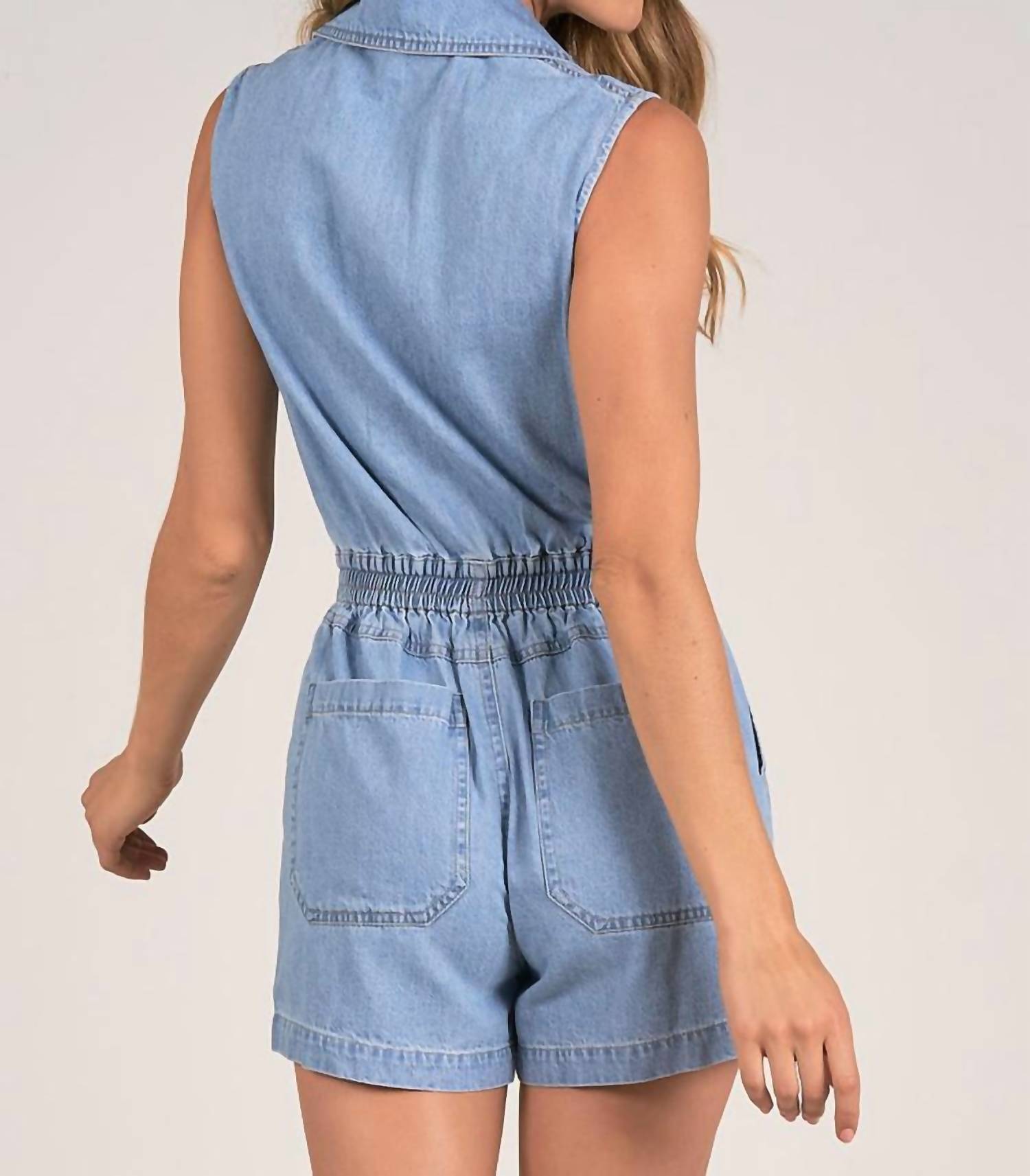 Adicione um toque descontraído ao seu guarda-roupa com o Macacão Haylee Chambray Zip da ELAN, disponível em azul jeans. Este macacão sem mangas é confeccionado em algodão liso e possui bolsos frontais e traseiros práticos. Fechamento: zíper completo. Perfeito para um dia casual de primavera, é uma peça versátil, adequada para diversas ocasiões, incluindo aniversários e Dia das Mães, inspirada na moda dos anos 90. Shaina está vestindo tamanho P.