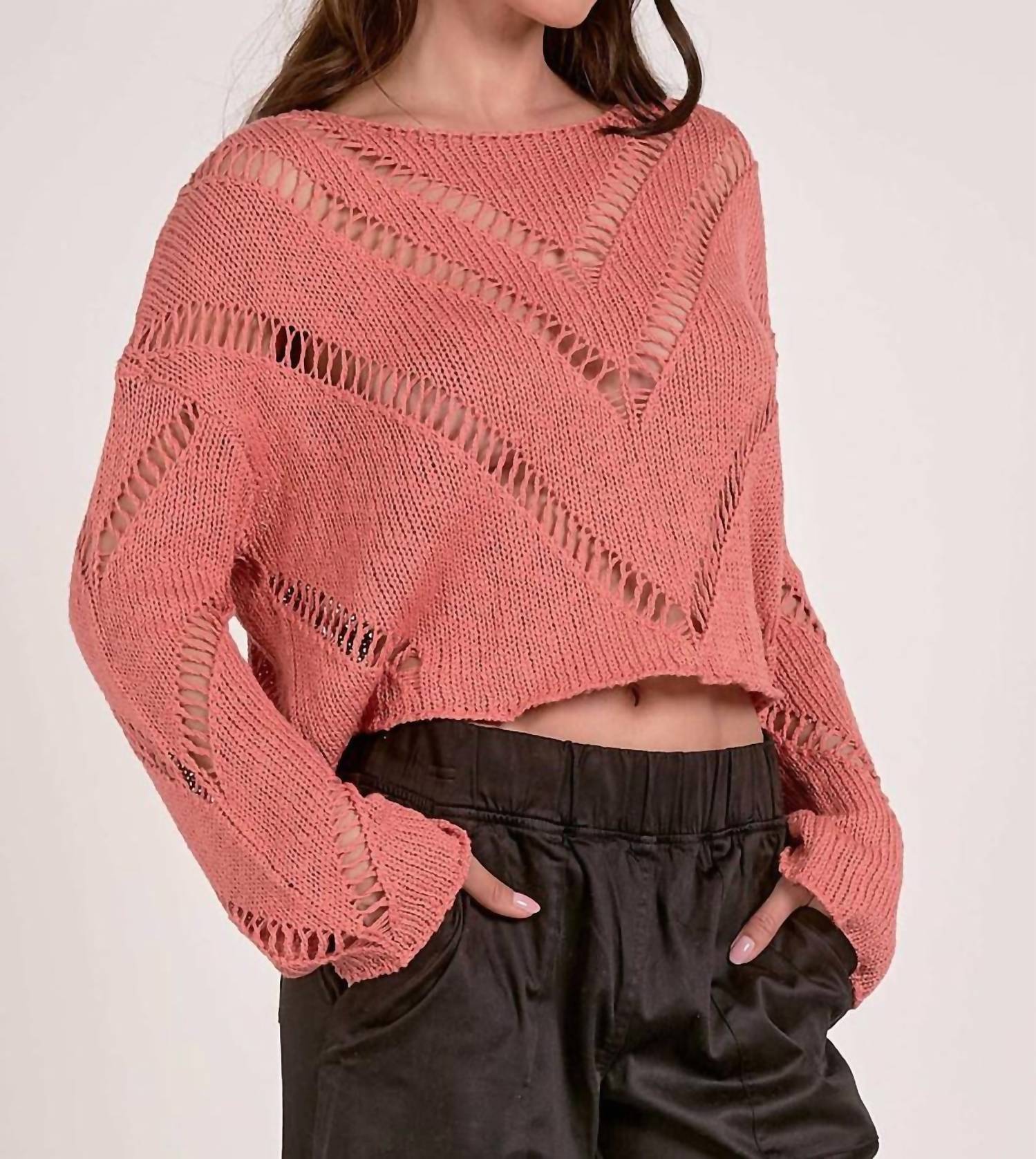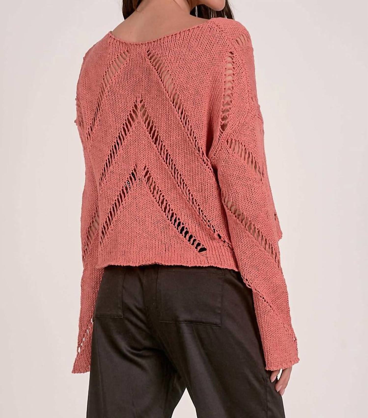 Experimente a combinação perfeita de conforto e estilo com este suéter moderno de gola redonda, projetado para elevar seu guarda-roupa sem esforço. Combine-o com seu jeans e mocassins favoritos para o look perfeito. Experimente o charme único do Suéter Ivy Cutout da ELAN, uma peça deslumbrante confeccionada em malha macia de algodão em um delicado tom pêssego. Este suéter de manga comprida apresenta um tecido de malha de crochê com padrões chevron ousados, combinando perfeitamente conforto e estilo. Composição: 68% algodão, 32% poliéster. Fecho: Puxe. Cuidados: Lavar à mão e secar no varal.