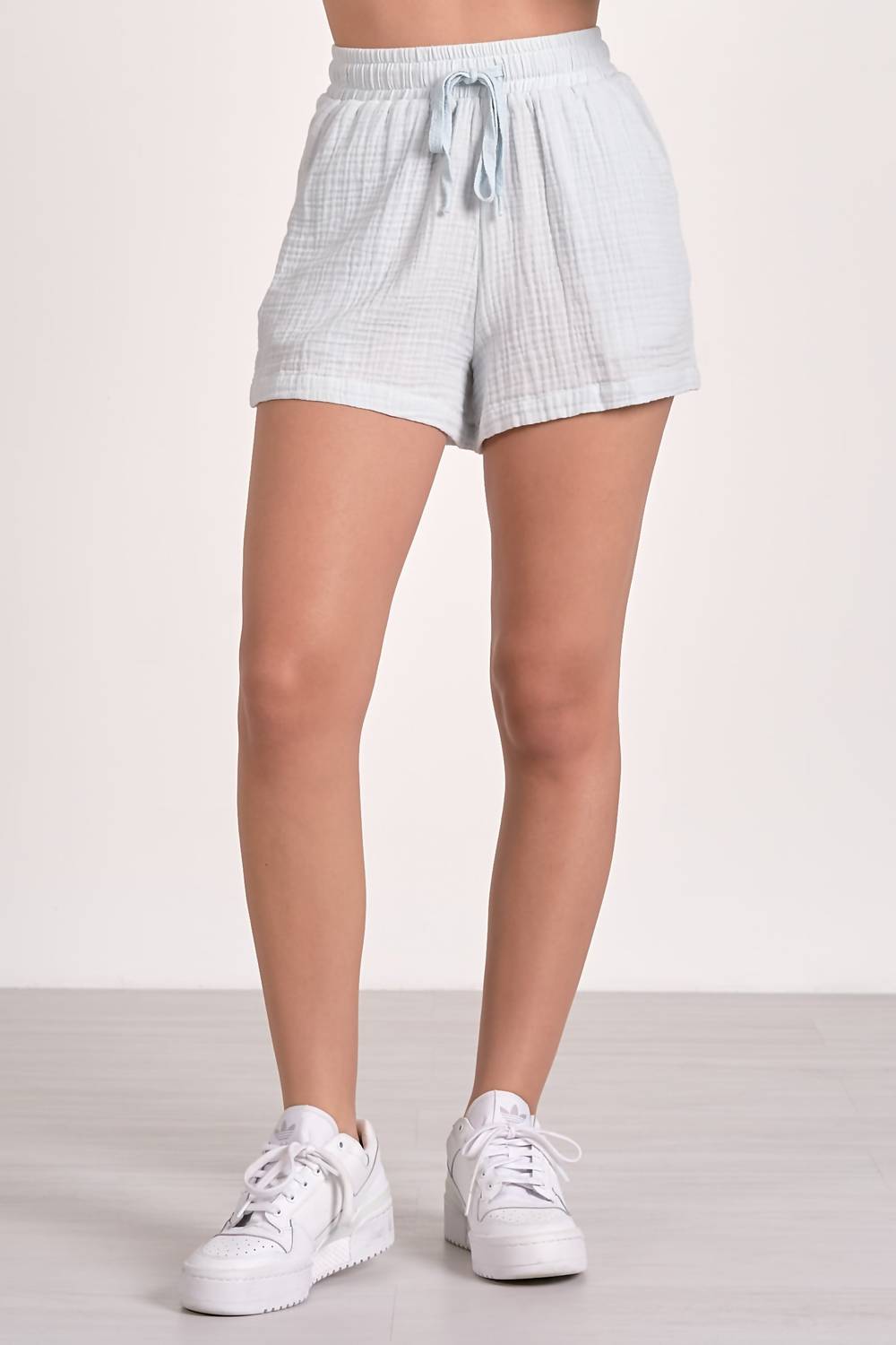 Apresentamos o short Ivy da ELAN, uma opção chique e arejada, perfeita para escapadas e férias de verão. Confeccionado em algodão leve com estampa lisa azul-claro, este short possui um fecho prático e bolsos práticos. Desenvolvido para mulheres, o cós com cordão garante um ajuste confortável e personalizável. Ideal para aproveitar os dias ensolarados, principalmente em feriados festivos como o 4 de julho.