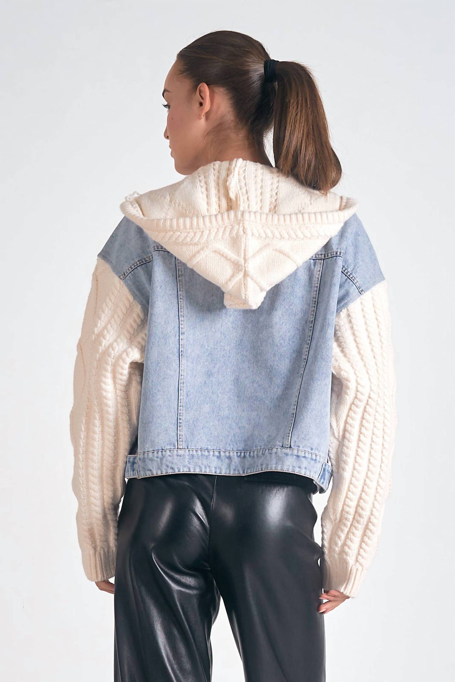 Clássico, descolado e combina com quase qualquer estilo de roupa. Apresentamos a Jaqueta Suéter Jade Denim da ELAN, um item essencial para o seu guarda-roupa de inverno. Esta jaqueta feminina possui mangas compridas com um aconchegante decote com capuz, confeccionada em mistura de algodão texturizado e corpo em jeans com lavagem clara na cor Denim White. A jaqueta oferece um corte quadrado e estiloso com bolsos práticos e um fecho clássico de botão. Para cuidados, lave à mão e deixe secar na horizontal para manter seu visual chique e esportivo.