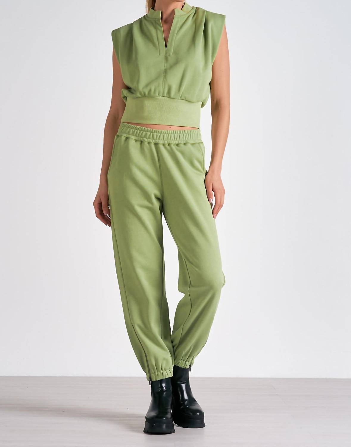 Calça jogger verde elegante e estilosa. Confeccionada em algodão macio para máximo conforto. Projetada com ajuste confortável e cintura alta. Garante facilidade de movimento com seu fecho pull-on. Combine funcionalidade com uma silhueta moderna.
