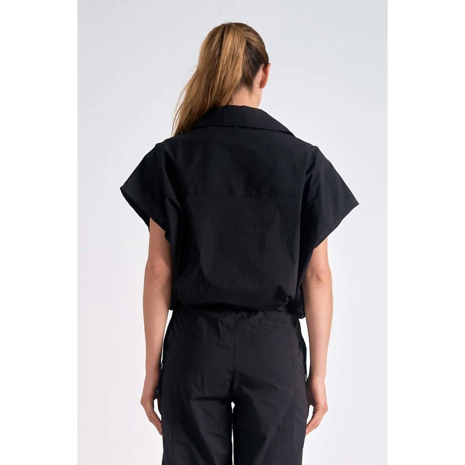 Uma blusa versátil que pode ser usada do escritório ao jantar! Abrace o chique sem esforço com a Blusa Last Spot da ELAN, uma peça preta sólida perfeita para qualquer ocasião. Com mangas curtas e um prático bolso frontal, esta blusa oferece estilo e funcionalidade. Fechamento: Fecho de pressão. Com um decote clássico, é uma adição sofisticada a qualquer guarda-roupa.