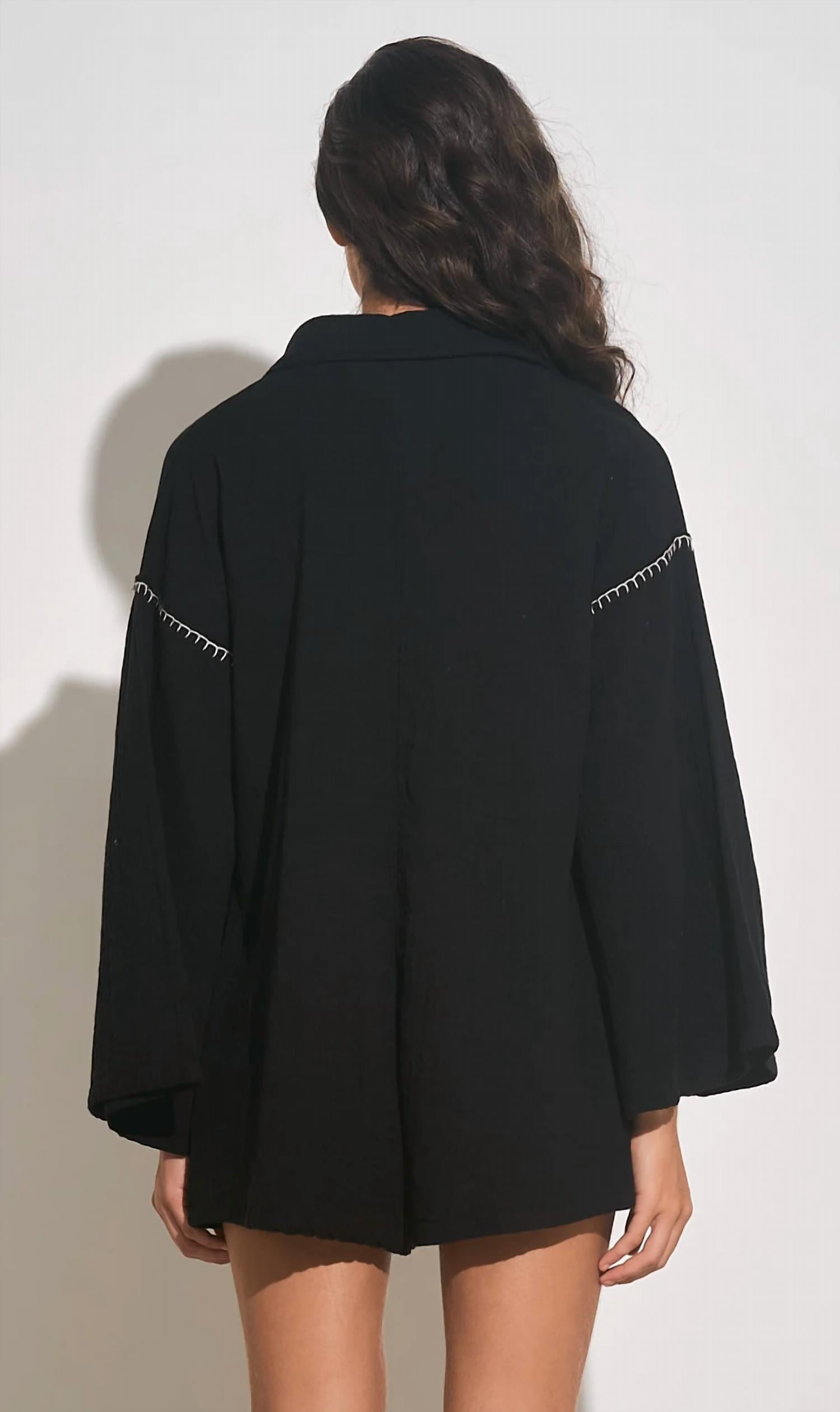 Não é preciso muito para que esta peça fique descolada sem esforço. Adicione algumas joias chamativas para dar um toque especial ou calce tênis para um visual mais casual. Eleve o seu look resort com o Macacão de Manga Longa e Gola V ELAN, uma peça chique em um tom preto clássico. Este macacão vem com elegantes mangas sino adornadas com detalhes contrastantes e um decote em V contemporâneo para um toque de estilo. Confeccionado em 100% algodão, ele foi criado para mulheres que valorizam o conforto e a modernidade em seu guarda-roupa. O fecho é prático e fácil de vestir, e as instruções de cuidado recomendam lavagem delicada à mão e secagem no varal.