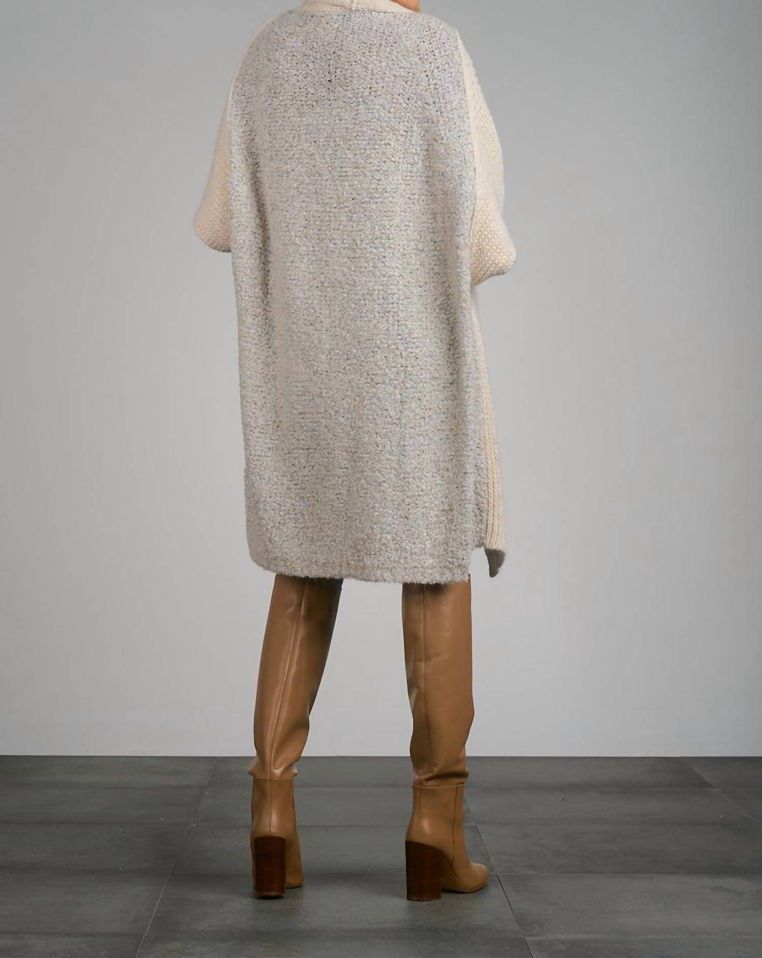 Use este adorável cardigan sobre qualquer camisola ou regata. Cardigã longo de lã em tons de marfim e cinza mesclado. Ombros caídos e mangas dolman. Peso de qualidade. Fica logo abaixo do joelho em mulheres de 1,65 m. Caimento folgado em toda a peça. 80% acrílico, 15% náilon, 5% lã. Lavar à mão com água fria.