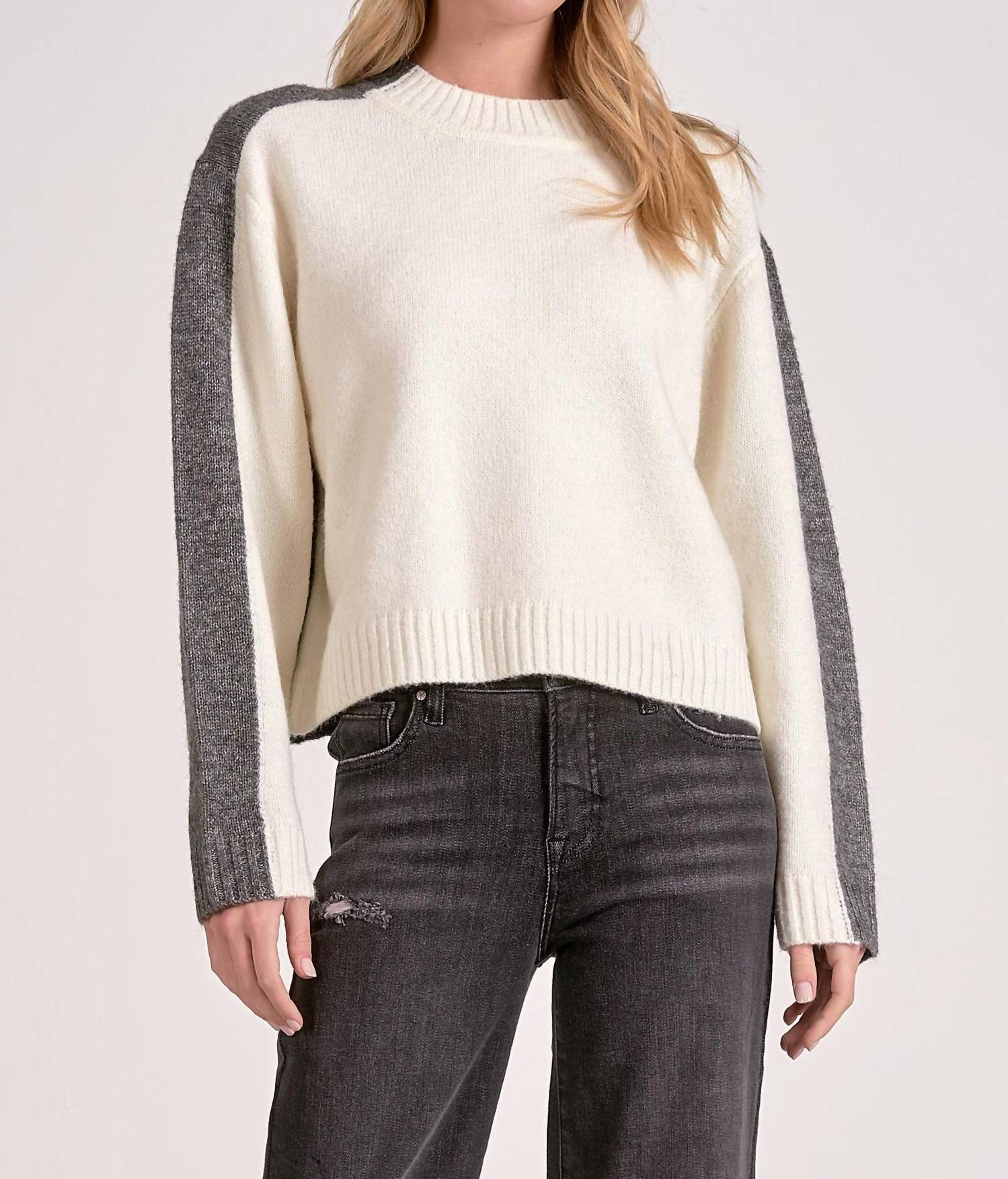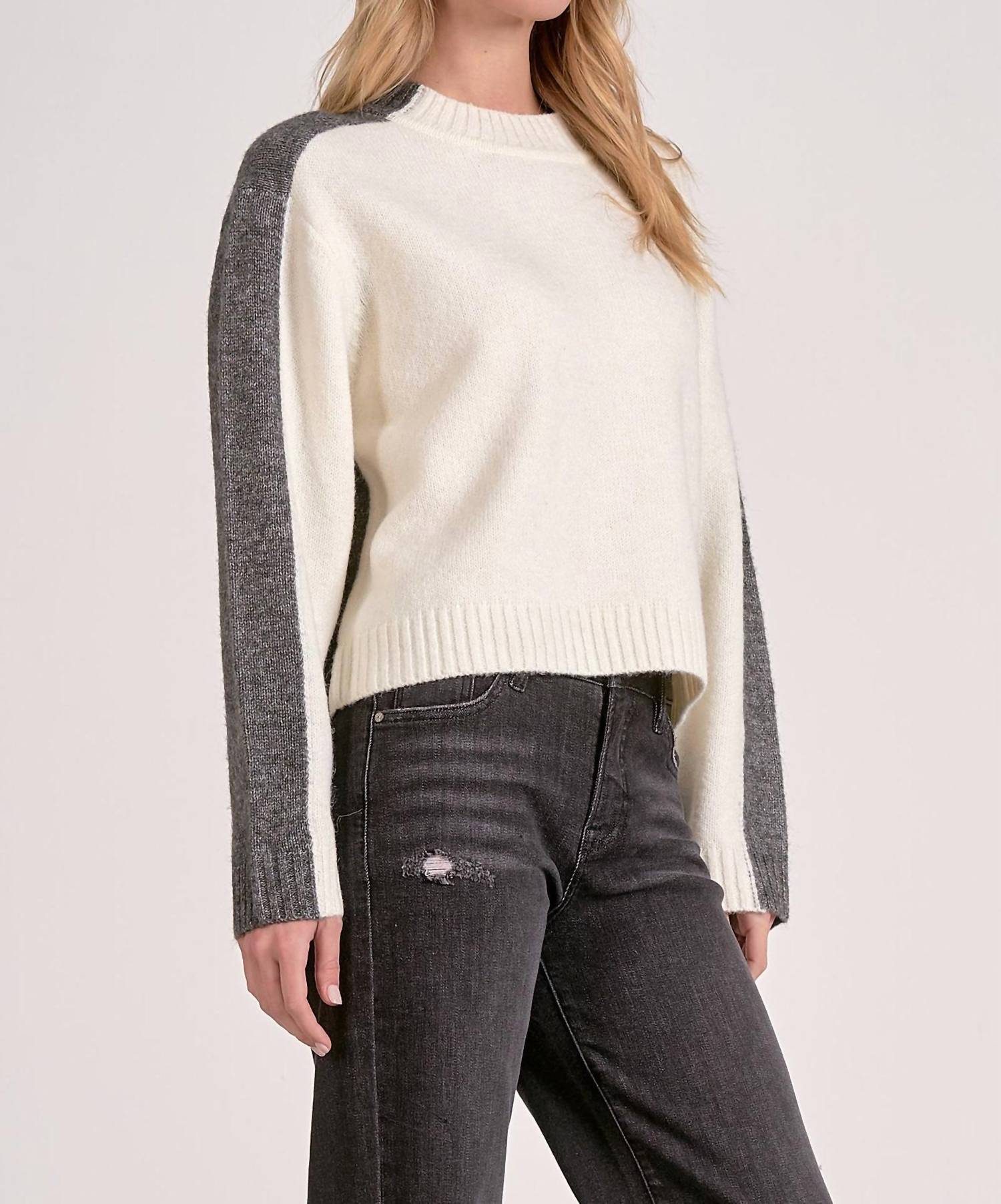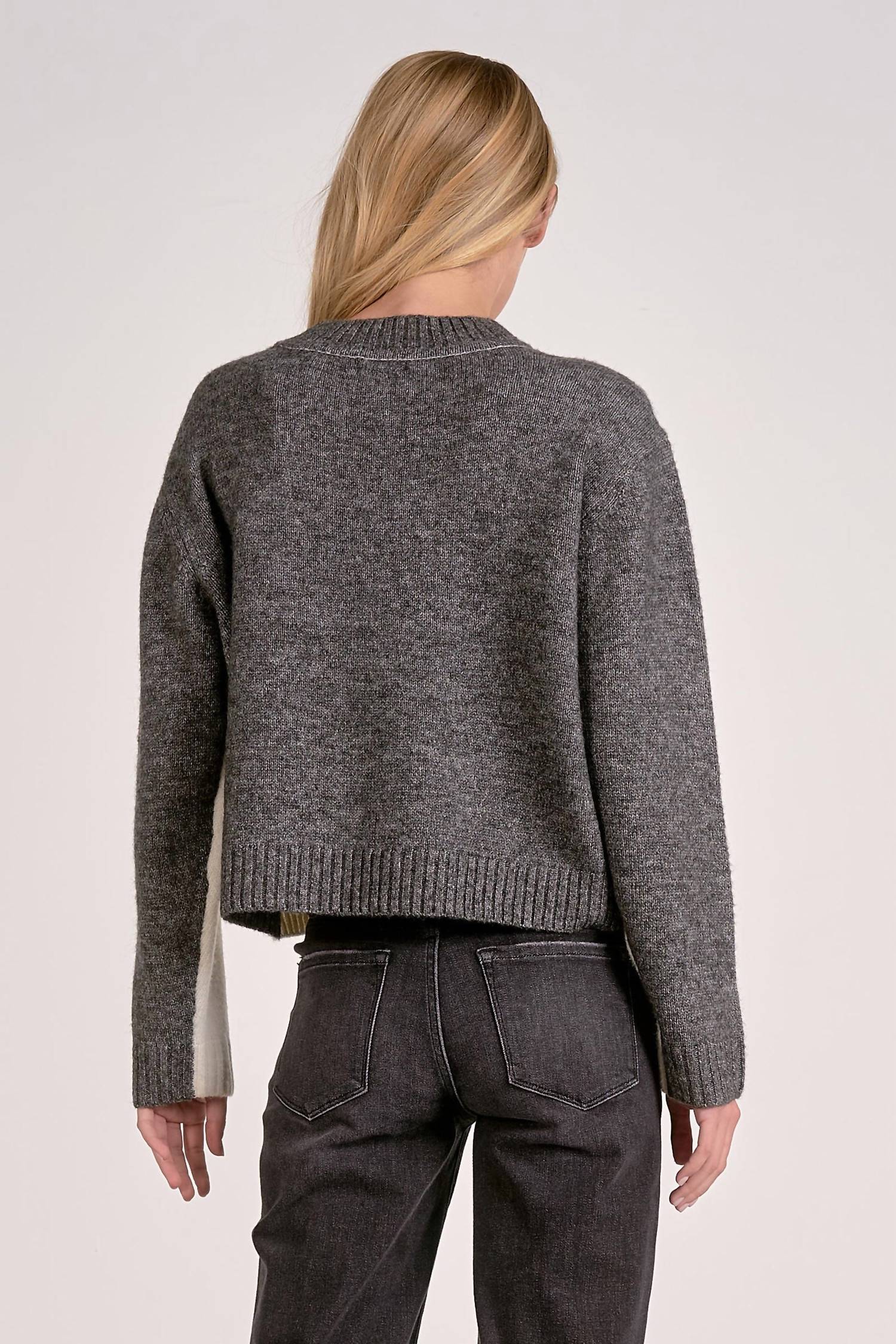 Discover the Marla Color Block Sweater by ELAN, a stylish choice for the modern woman. This medium-length cardigan features a sophisticated mock neckline and color-blocking, with cream in the front and grey in the back. Crafted from a soft blend of 78% polyester, 13% acrylic, 6% wool, and 3% spandex, it offers comfort for any outing. Designed with long sleeves and a convenient pull-on closure, it is easy to care for by hand washing cold and avoiding bleach and tumble drying.