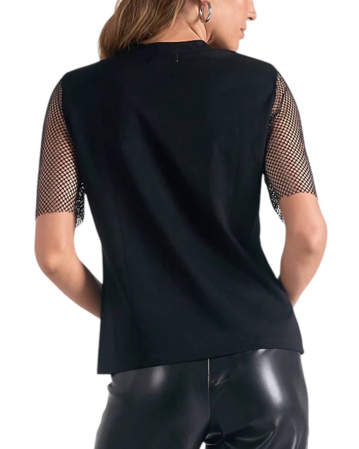 Uma fusão de estilo chique e toque moderno. Com mangas curtas em malha metálica e gola redonda, dá um toque moderno à camiseta clássica. Uma combinação confortável de detalhes, gola redonda e mangas curtas em malha metálica, conferem um visual chique e moderno. Mistura de algodão, poliéster e elastano. Lavável à mão, esta peça oferece uma adição versátil ao seu guarda-roupa — lavável à mão.