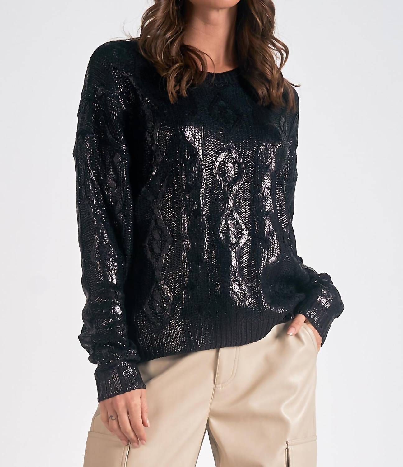 Apresentamos o Suéter Metálico de Gola Redonda da ELAN, uma peça marcante com detalhes metálicos brilhantes que realçam sua personalidade. Este suéter preto chique tem mangas compridas e um fecho confortável. Feito 100% em acrílico, oferece um ajuste perfeito para um estilo despojado. Instruções de cuidado: Lavar à mão com água fria e secar no varal para melhores resultados.