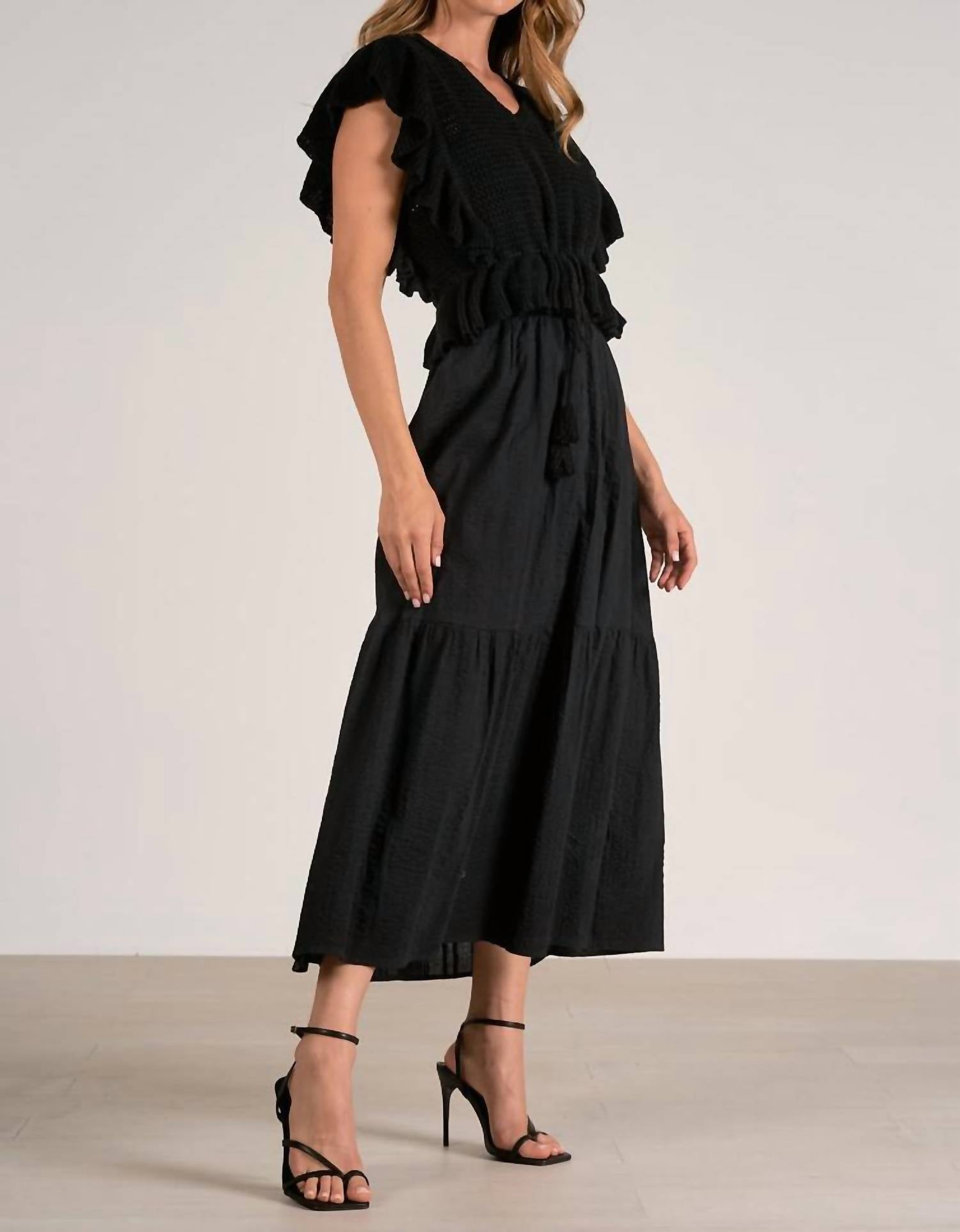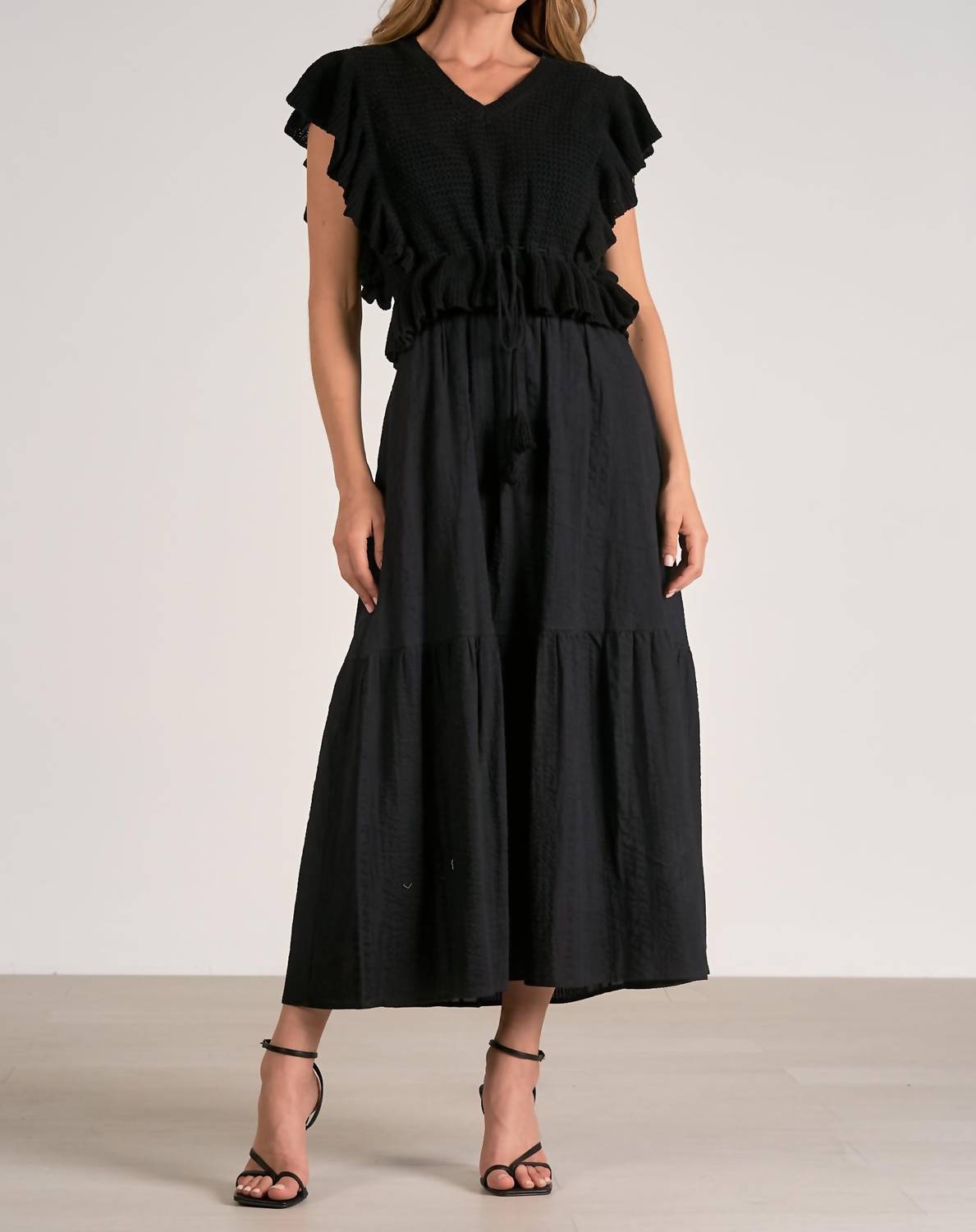 Um vestido midi tão versátil que suas opções de uso são infinitas. "Aurora" é um vestido longo com decote em V, confeccionado em fios mistos, com blusa estilo camiseta com manga curta e babados e saia fluida na parte inferior. Este vestido combina elegância e conforto sem esforço. Fiel ao tamanho. Caimento confortável e relaxado.