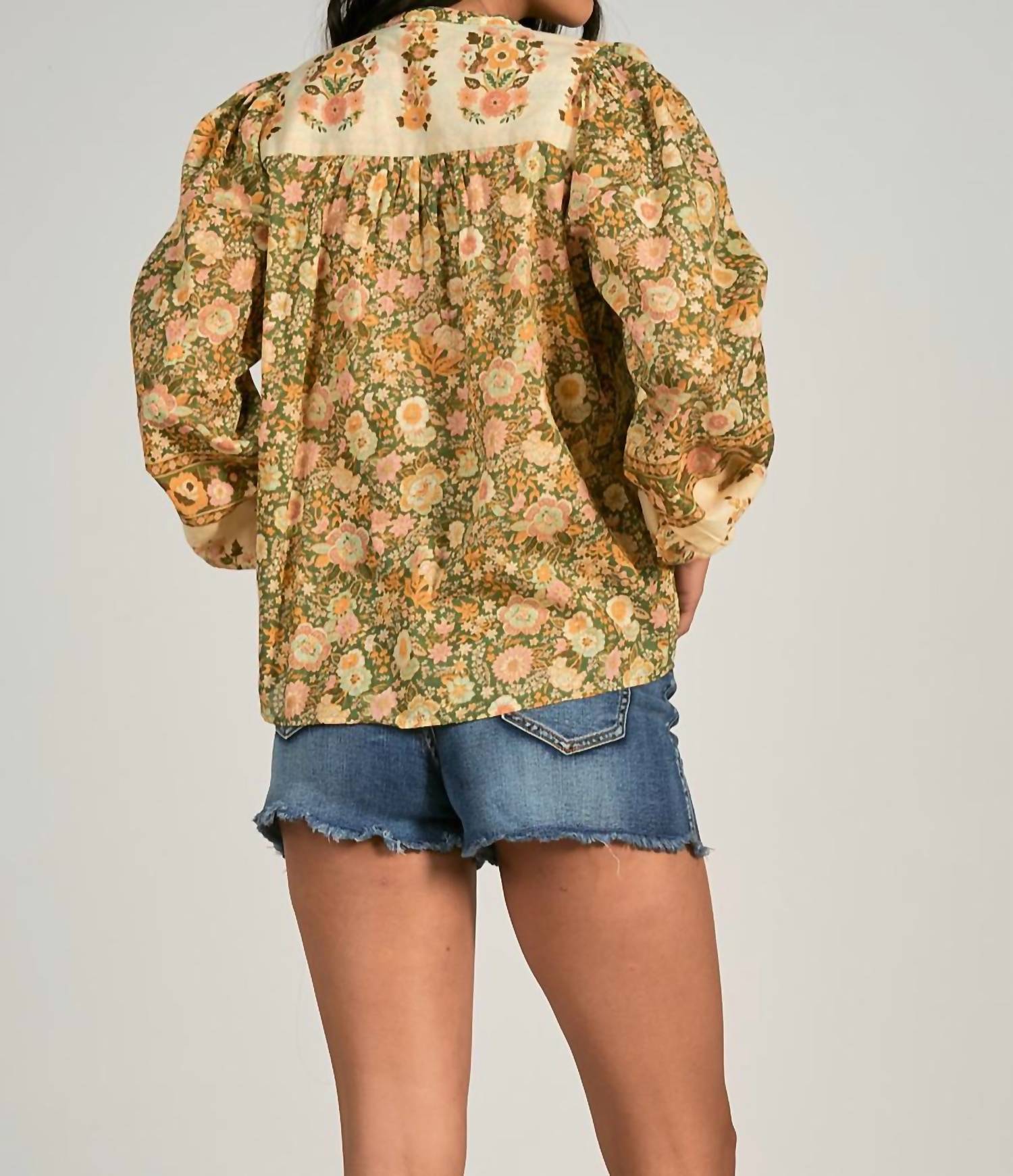 Uma blusa atemporal que nunca sai de moda. Blusa 100% algodão. Estampa floral. Lavar à mão separadamente. Detalhe de gravata.