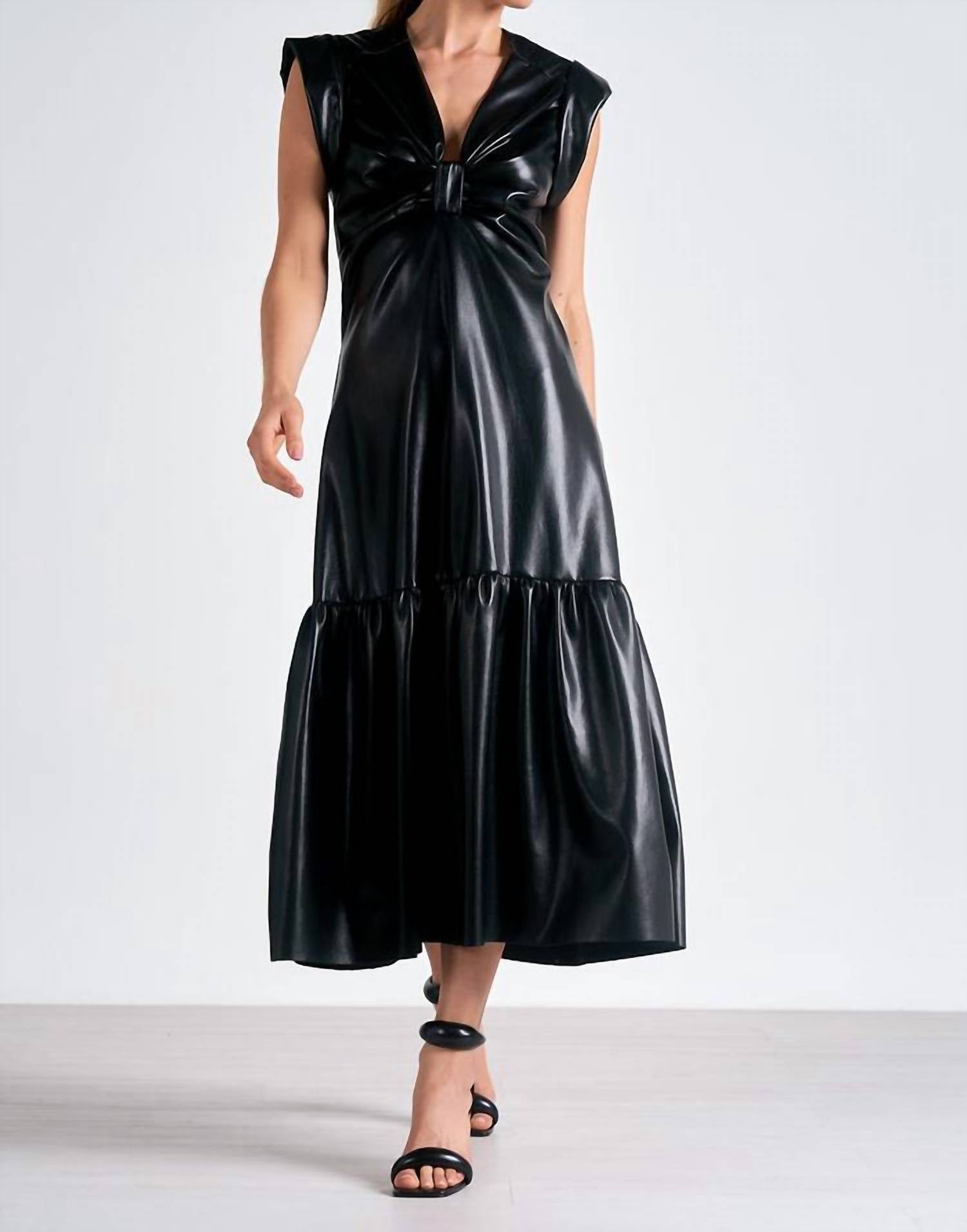 Eleve seu guarda-roupa com o Vestido Maxi Mystic da ELAN, uma peça deslumbrante sem mangas em couro sintético preto elegante. Confeccionado em poliéster resistente, este modelo em corte A oferece um decote em V chique e um comprimento maxi elegante. Fechamento: zíper prático. Perfeito para chamar a atenção em qualquer ocasião.