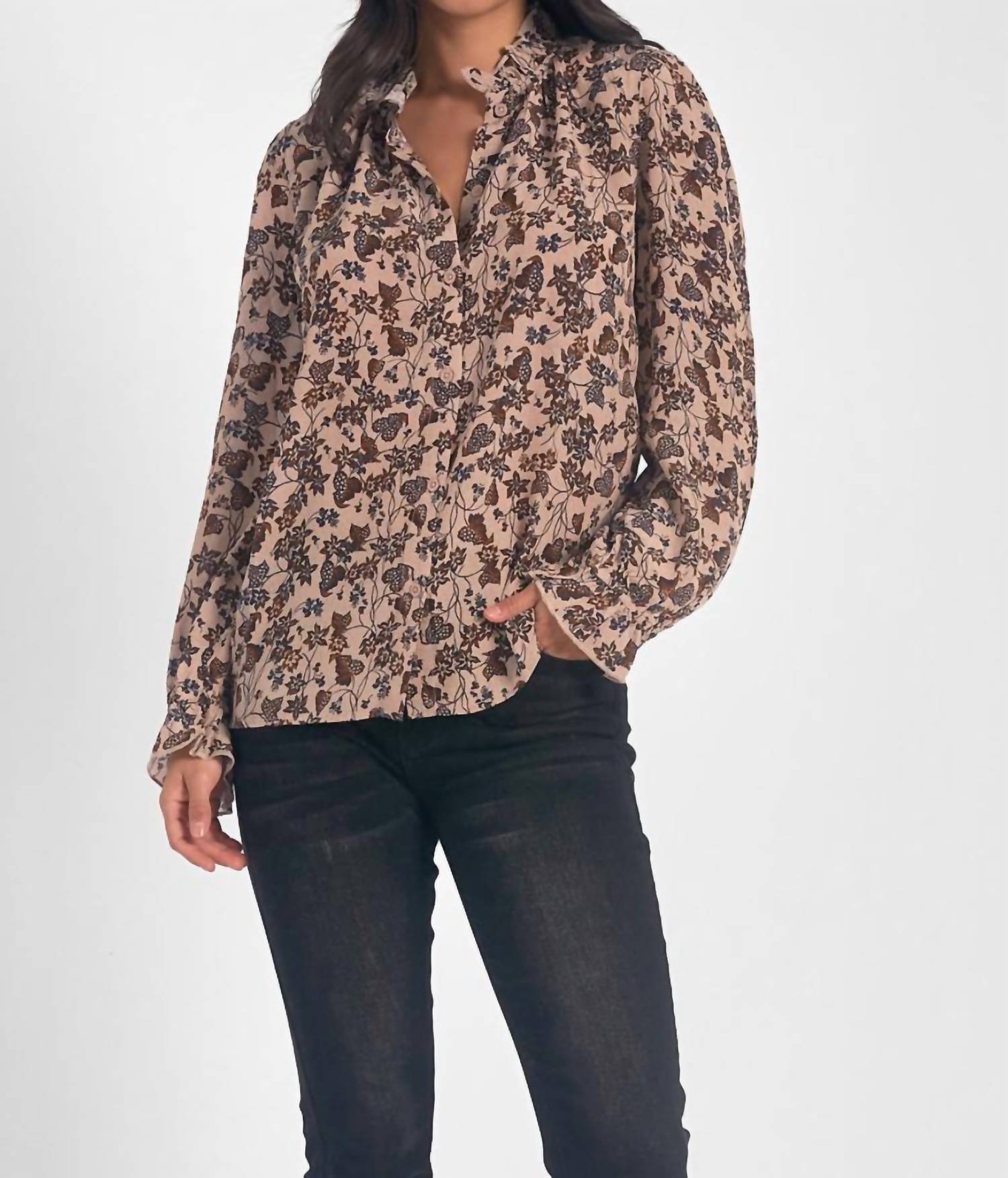 Combine isso com seus jeans e chinelos favoritos para sua próxima noite entre amigas. Estampa napa. Gola com babados, mangas compridas, punhos com babados e acabamento franzido. Abotoamento frontal. Forrado. Projetado para um ajuste relaxado. Medidas da modelo: 1,78 m, veste tamanho P. Altura: 85 cm, busto: 59 cm, cintura: 87 cm, quadril. Tamanho real. 100% viscose. Lavagem à mão. Fabricado na Índia.