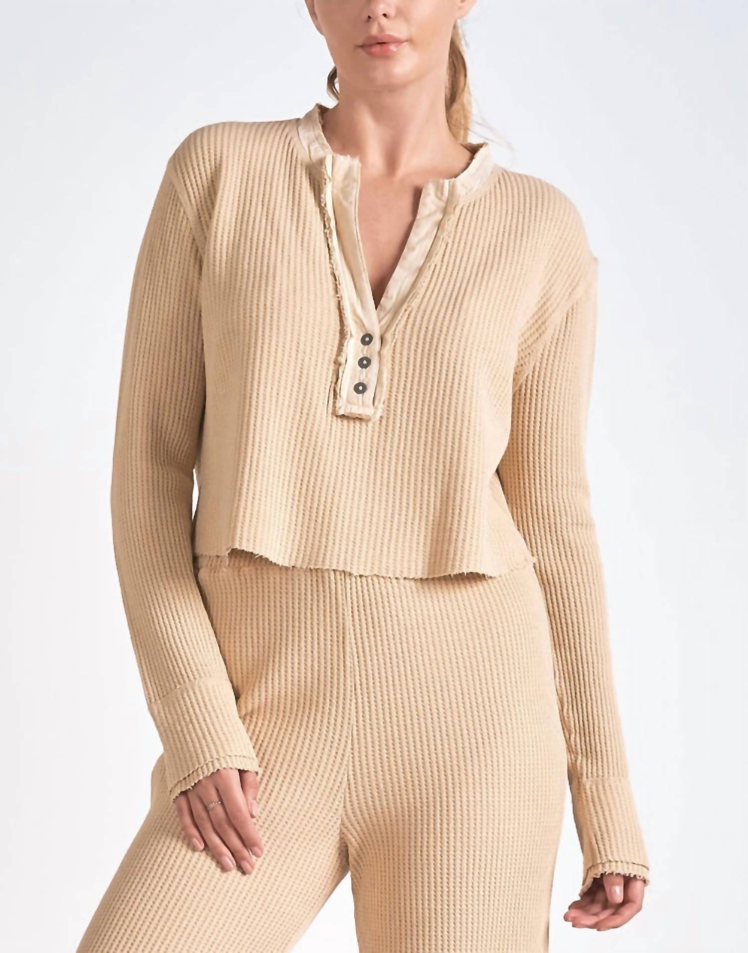 Você vai usar esse suéter confortável e clássico com gola em V durante toda a temporada. Experimente o estilo despojado do Top Nila da ELAN, um decote em V texturizado em um elegante tom bege. Com mangas longas, este design minimalista é perfeito para férias de primavera ou festas de fim de ano. Cuide dele com uma simples lavagem à mão. Calças combinando disponíveis para completar o seu look.