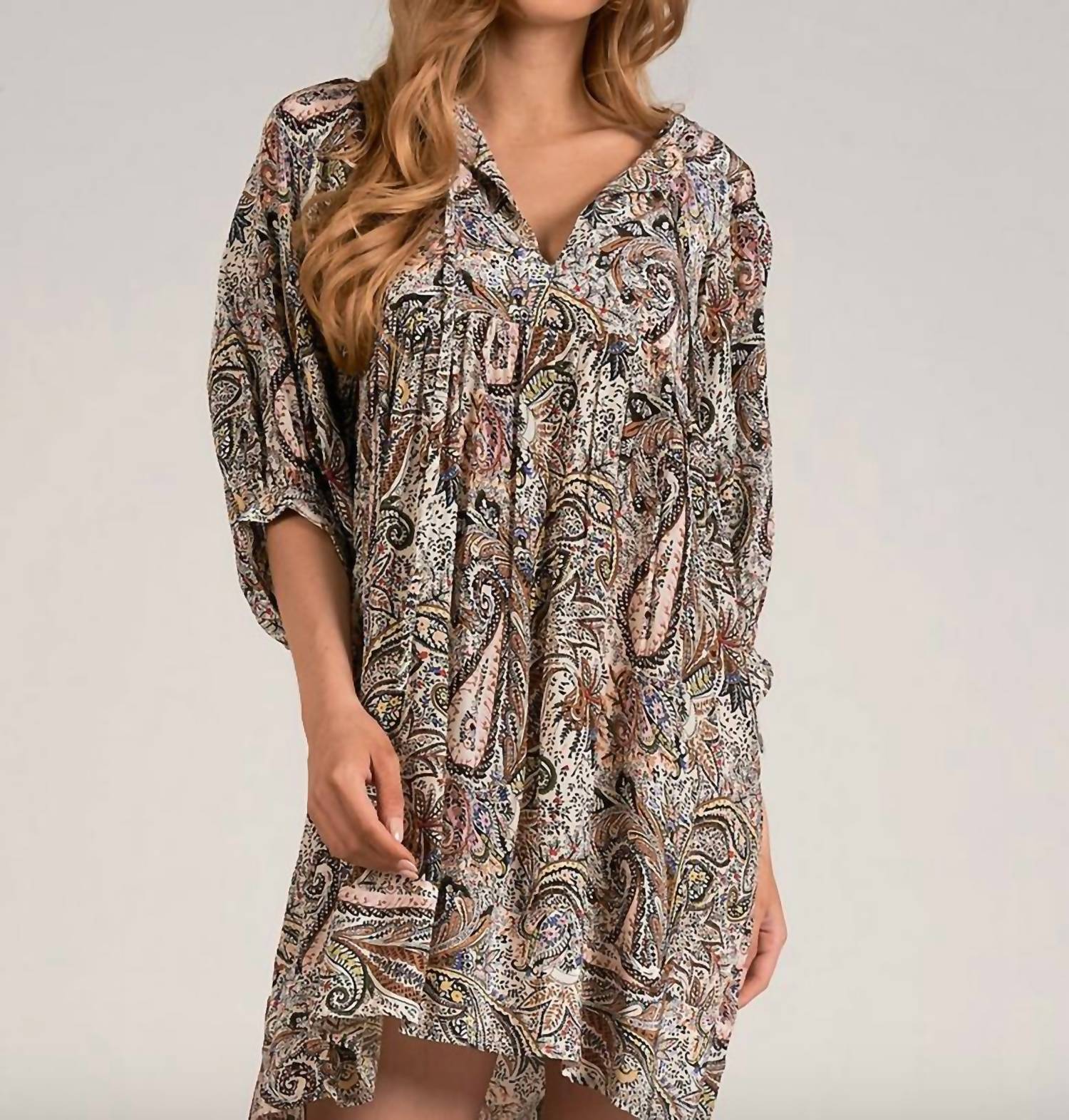 Dê as boas-vindas à primavera com o Vestido Paisley com Decote em V da ELAN, uma escolha encantadora para qualquer ocasião. Confeccionado em Rayon luxuoso, este minivestido apresenta uma fascinante estampa paisley multicolorida que complementa seu decote em V e a silhueta transpassada. As mangas bufantes três quartos adicionam um toque de extravagância, enquanto toques de estilo como um laço frontal opcional e pregas delicadas elevam seu charme. Projetado com fecho pull-on para facilitar o uso, este vestido deve ser lavado à mão em água fria e seco na horizontal ou pendurado.