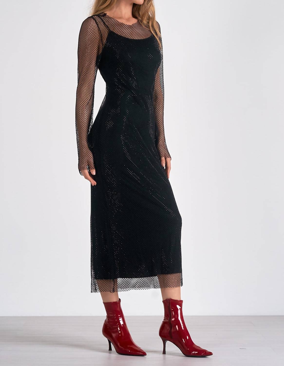 O vestido com o comprimento perfeito existe. Gola redonda. Mangas longas transparentes. Silhueta maxi. Estilo pulôver. Forrado. 95% poliéster/5% elastano. Lavar à mão.