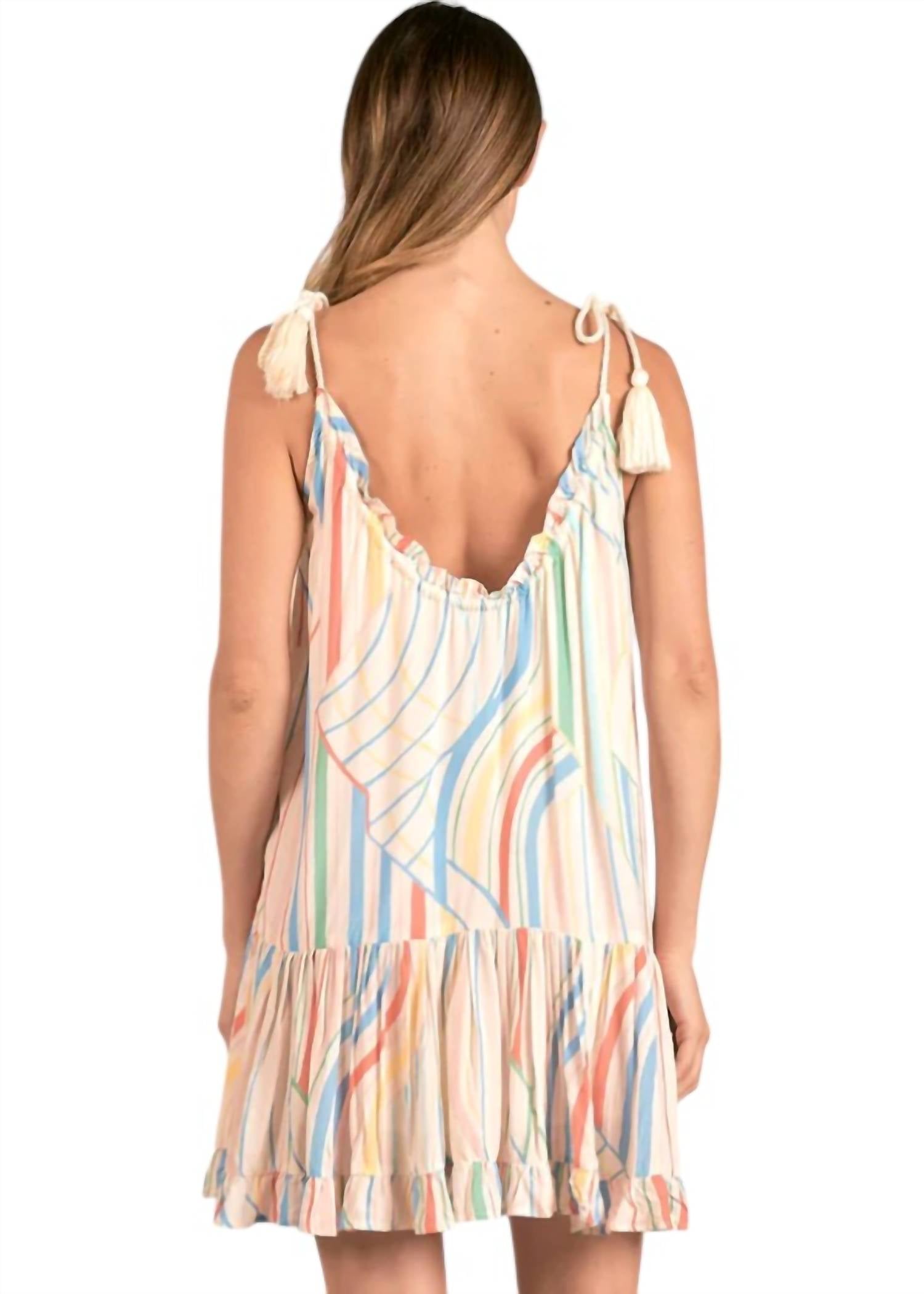 O minivestido perfeito para os meses mais quentes. Este minivestido tem alças finas e um design estampado. É estilo pull-on e é feito 100% de rayon. Lavar à mão.