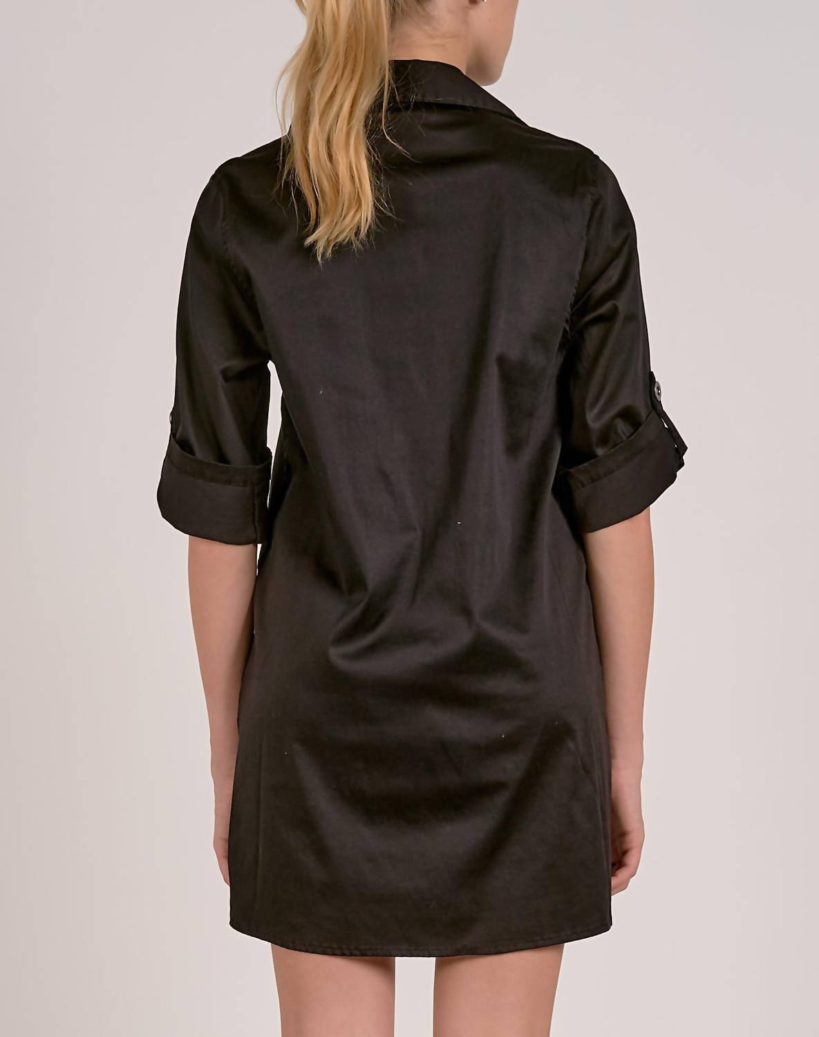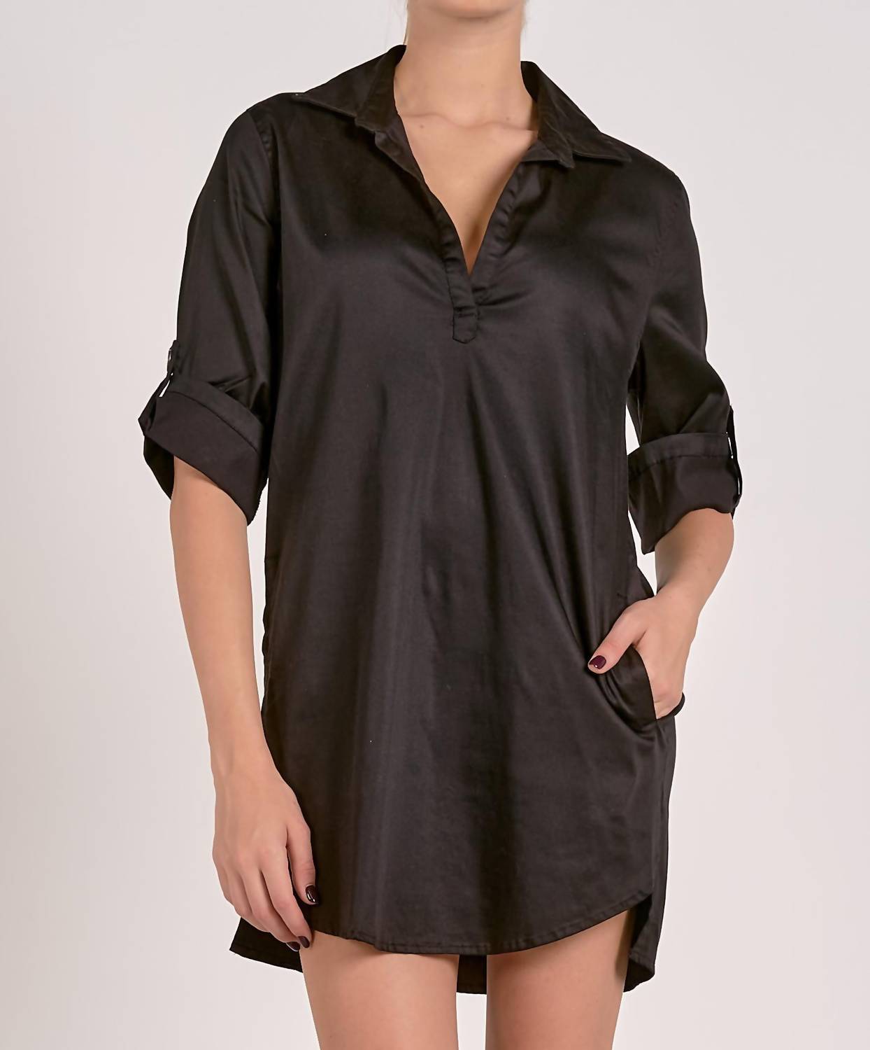 Combine isso com seus jeans e chinelos favoritos para sua próxima noite entre amigas. Apresentamos a Camisa ELAN Roll Tab, uma blusa preta sofisticada que combina conforto e estilo. Esta camisa apresenta um decote elegante com mangas três quartos, finalizado com punho dobrado e detalhe de aba de botão. Estilo: Cor sólida, fecho pull-on. Ideal para mulheres que buscam um toque elegante ao seu guarda-roupa.