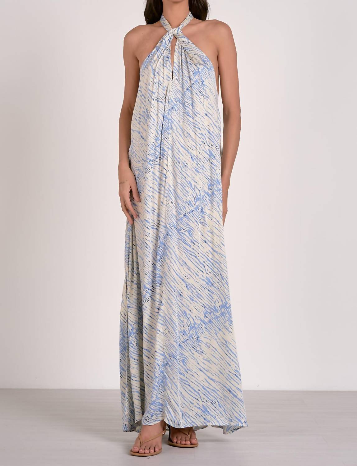 Um vestido longo que é tão fofo quanto confortável. Eleve seu guarda-roupa de verão com o Vestido Sahara Halter Maxi da ELAN, confeccionado em Modal luxuoso para o máximo conforto. Este vestido sem mangas com a elegante estampa Blue Sahara exala um toque boho chic, tornando-o a escolha perfeita para dias de praia ou reuniões de Ação de Graças. Sua silhueta transpassada e fecho pull-on garantem um caimento elegante e descontraído, realçado pelo elegante decote halter. O cuidado é fácil com as instruções de lavagem à máquina e secagem em tambor.