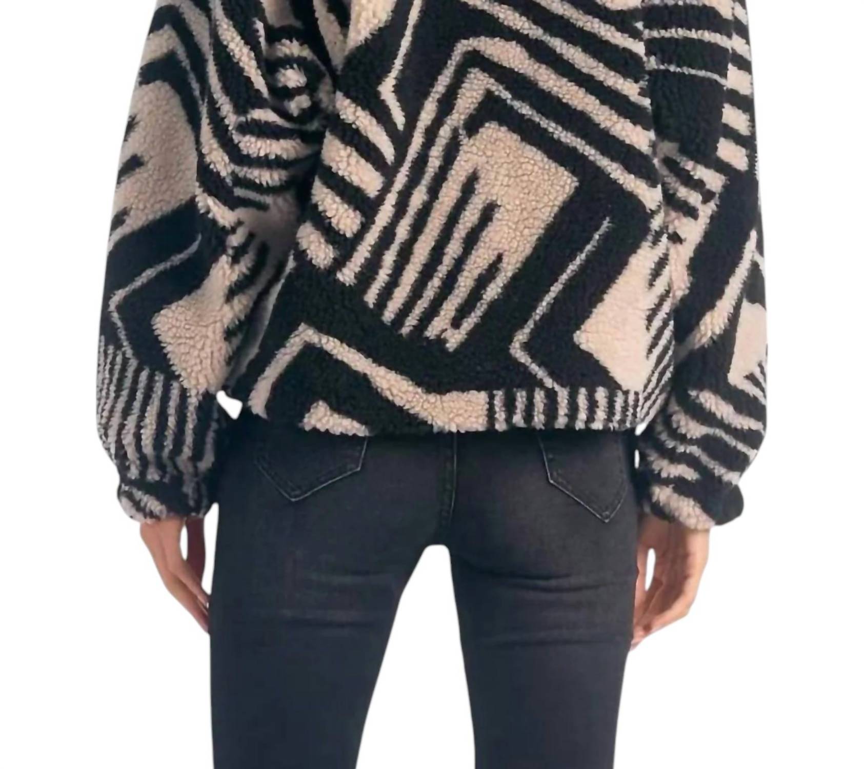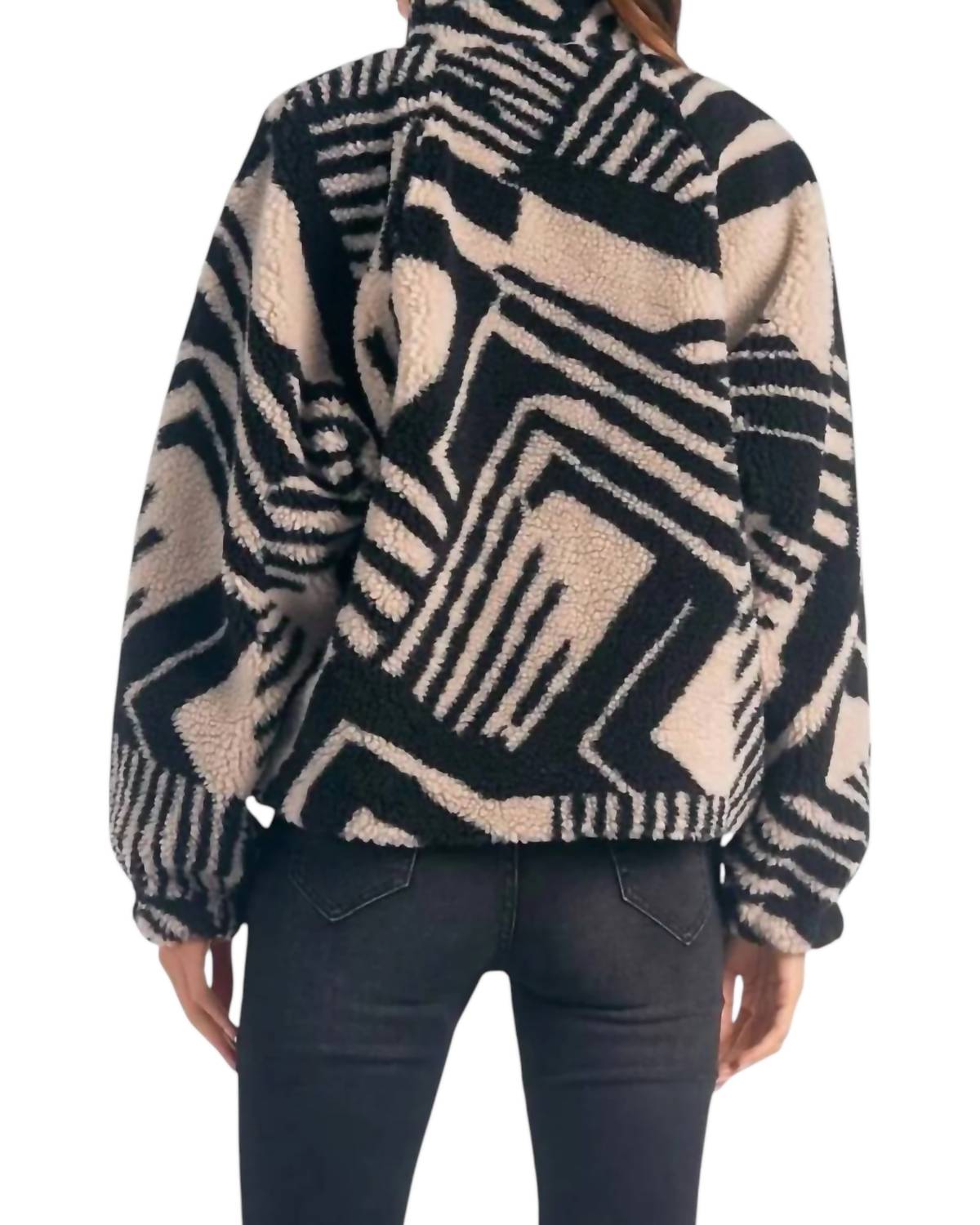 Absolutamente adorável e tão confortável que você não vai querer tirar. Esta jaqueta de pelúcia é a queridinha dos fãs. Esta jaqueta curta de pelúcia de manga comprida apresenta uma estampa ousada de zebra em preto e bege. Confeccionada em 100% poliéster, oferece conforto e estilo. Com 60 cm de comprimento, fecho de pressão e gola careca, é prática e elegante. Lavável à máquina para facilitar a manutenção.
