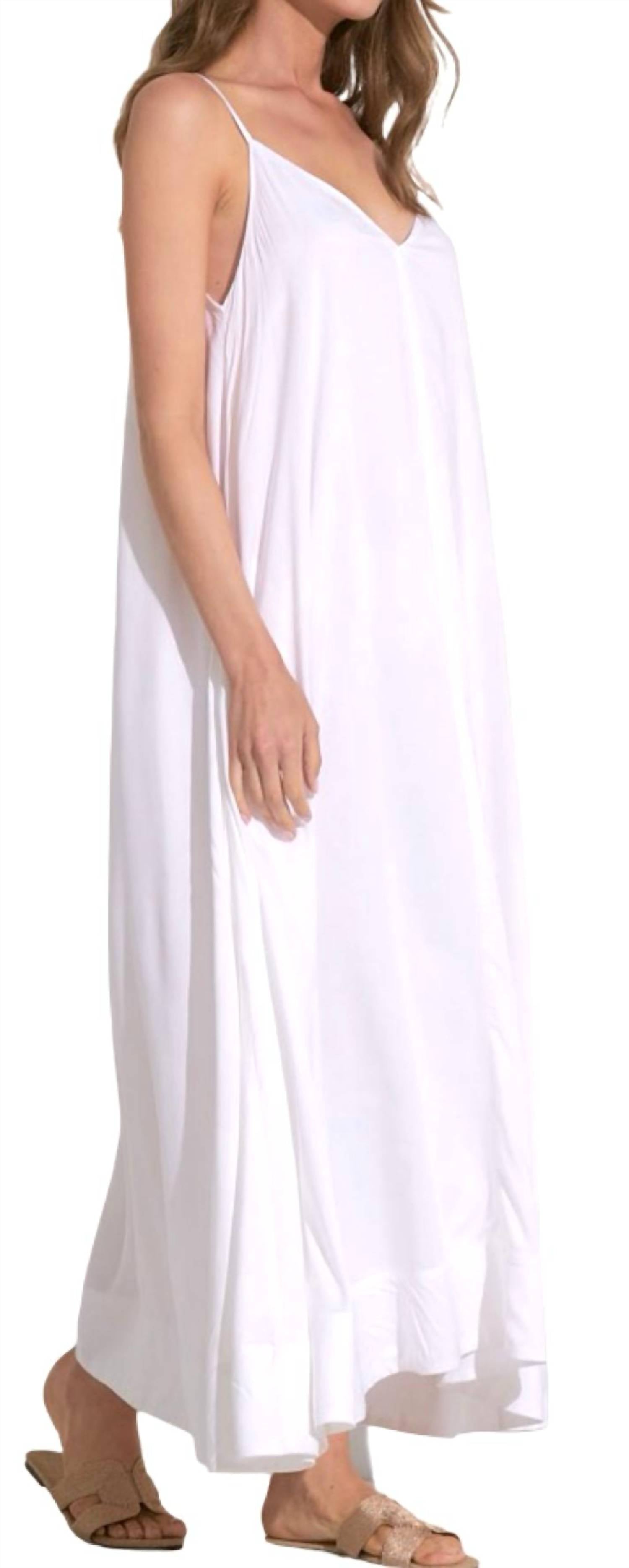 Um vestido longo que é tão fofo quanto confortável. Abrace o estilo descontraído do verão com o Vestido Longo com Alças Finas da ELAN, feito sob medida para escapadas ensolaradas. Este vestido longo branco possui alças finas ajustáveis e um corte em A elegante para um caimento leve, completo com bolsos laterais práticos. Feito em 100% algodão, o vestido oferece um toque macio e respirável, tornando-o ideal para férias ou dias quentes. Com um fecho prático, é fácil vestir este vestido liso com decote em V e desfrutar de um look descontraído e chique.