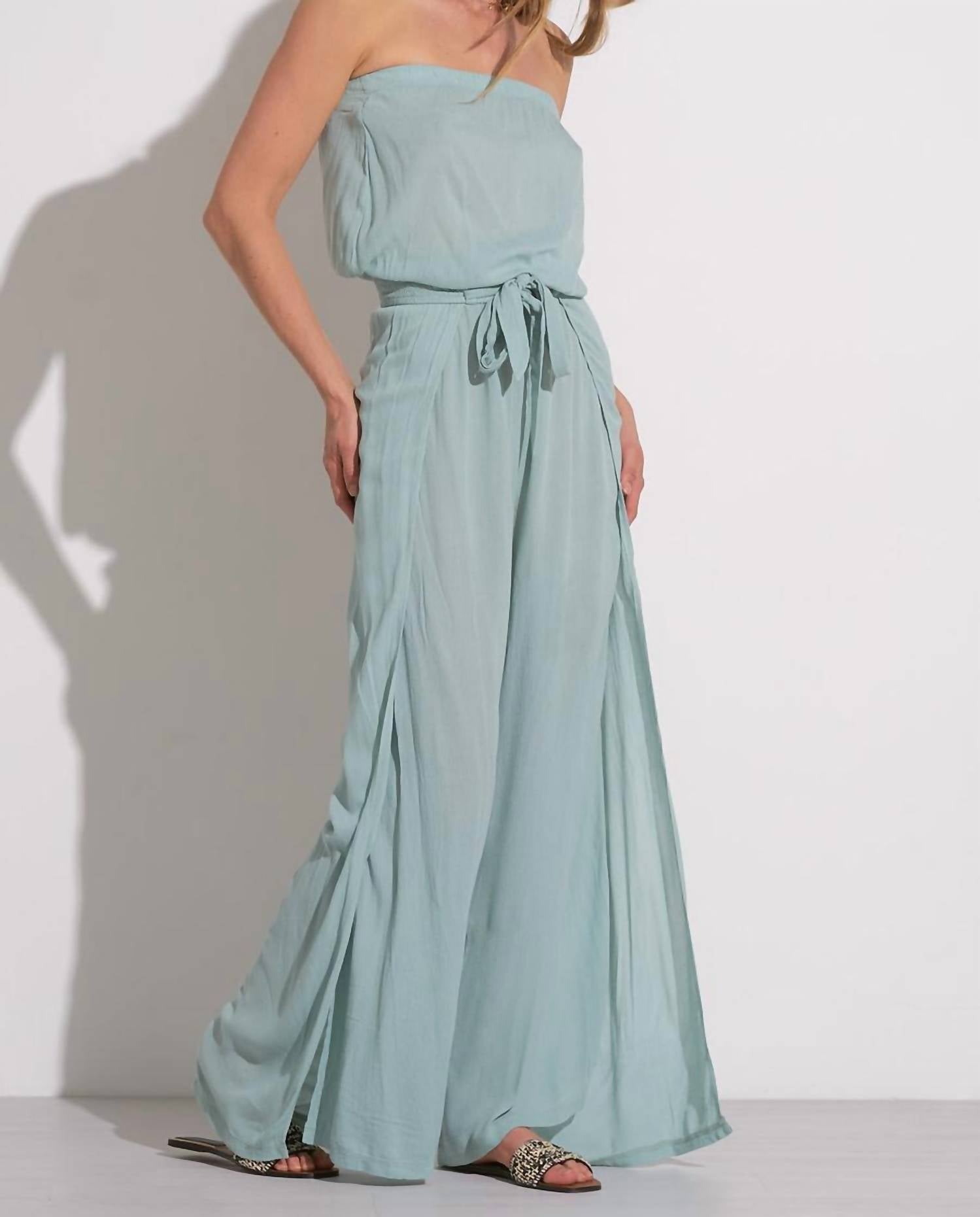 Vista e vá! Este macacão apresenta um top estilo blusão sem alças, combinado com um cós franzido e um elegante laço frontal. A calça larga com sobreposição adiciona um toque de elegância, garantindo que você se destaque com estilo. Perfeito para qualquer ocasião, este macacão de estampa lisa não possui bolsos, garantindo uma silhueta elegante.