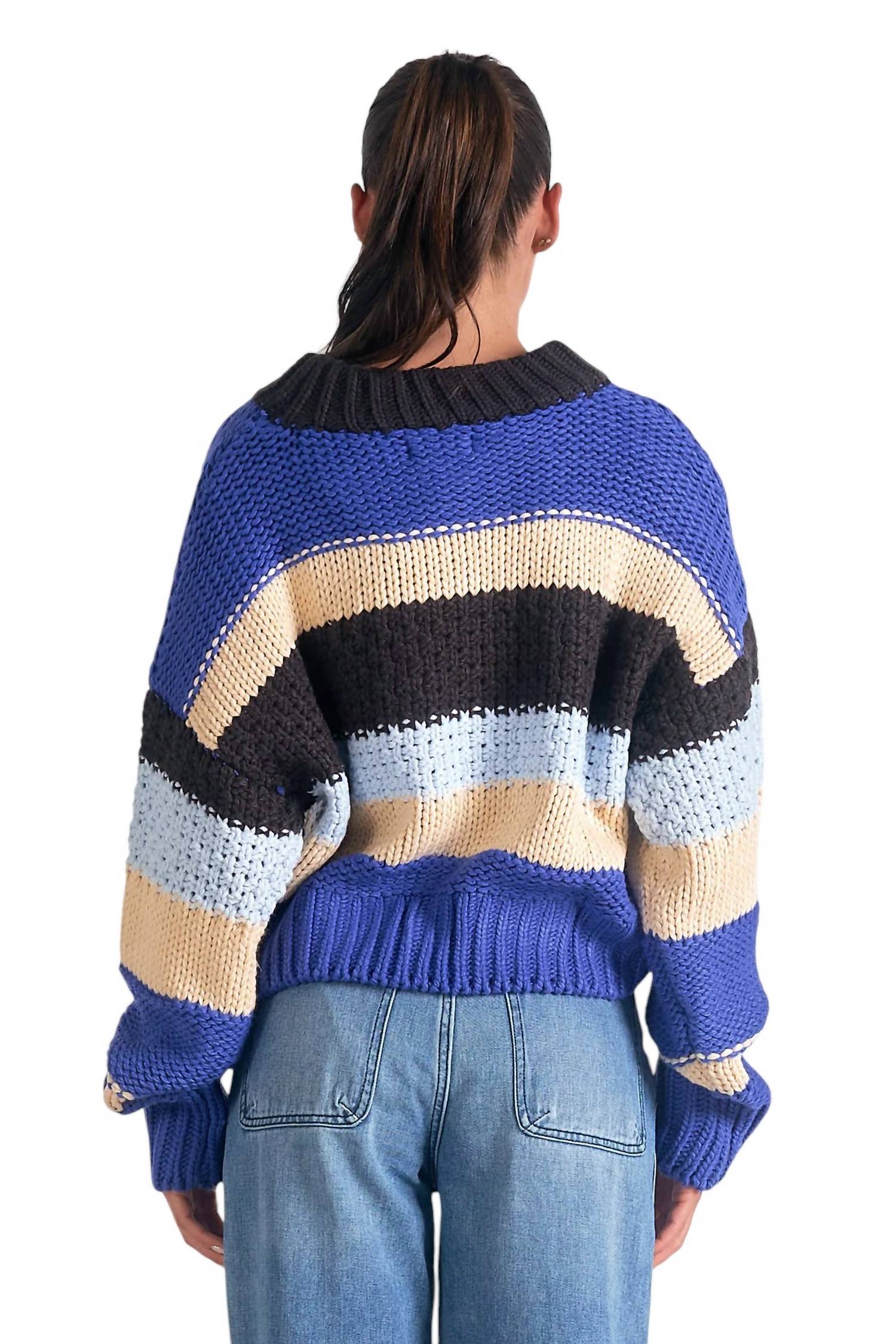 Este suéter de gola redonda apresenta listras, mangas compridas e design tipo pulôver. Possui corte levemente cropped e bainha canelada. Feito em 100% acrílico.