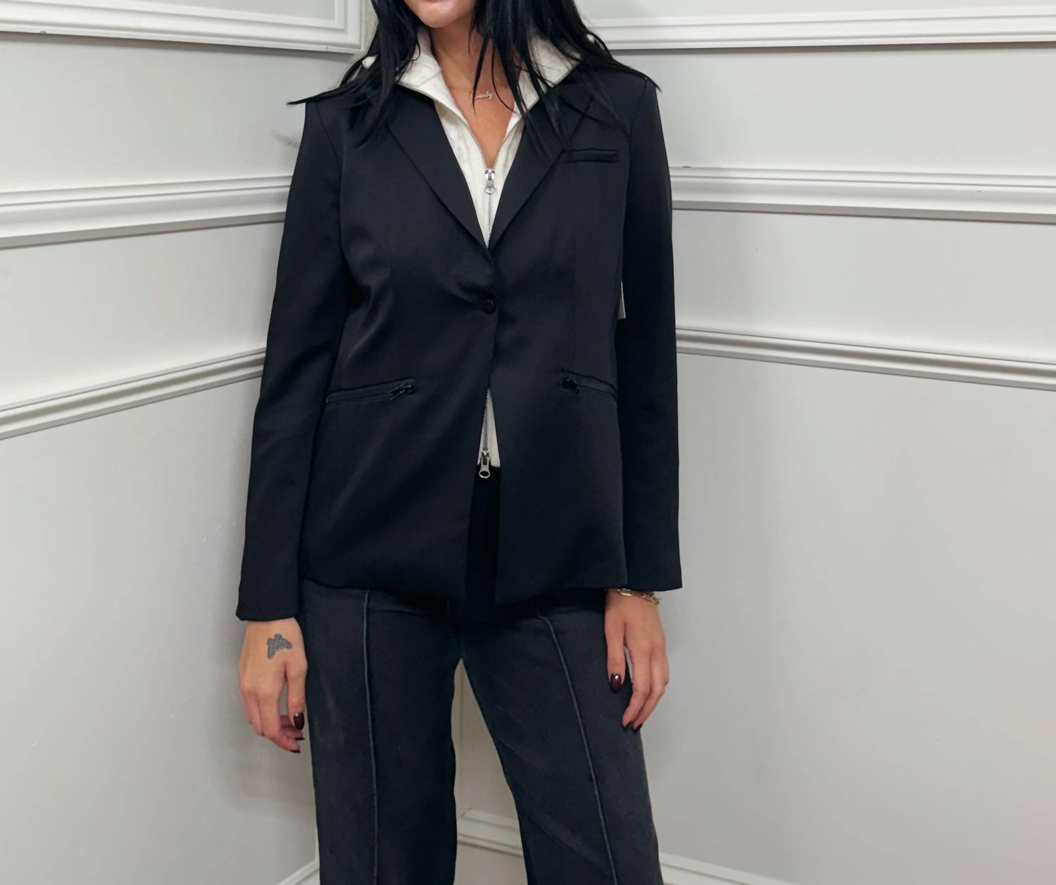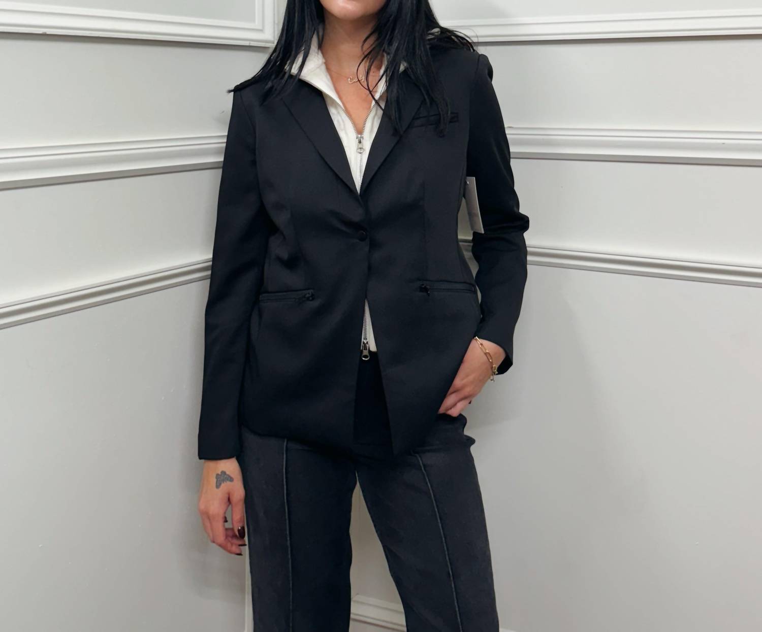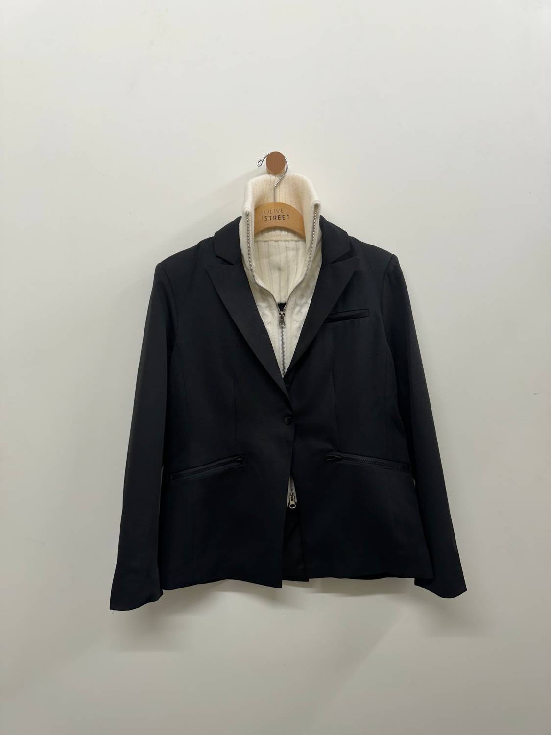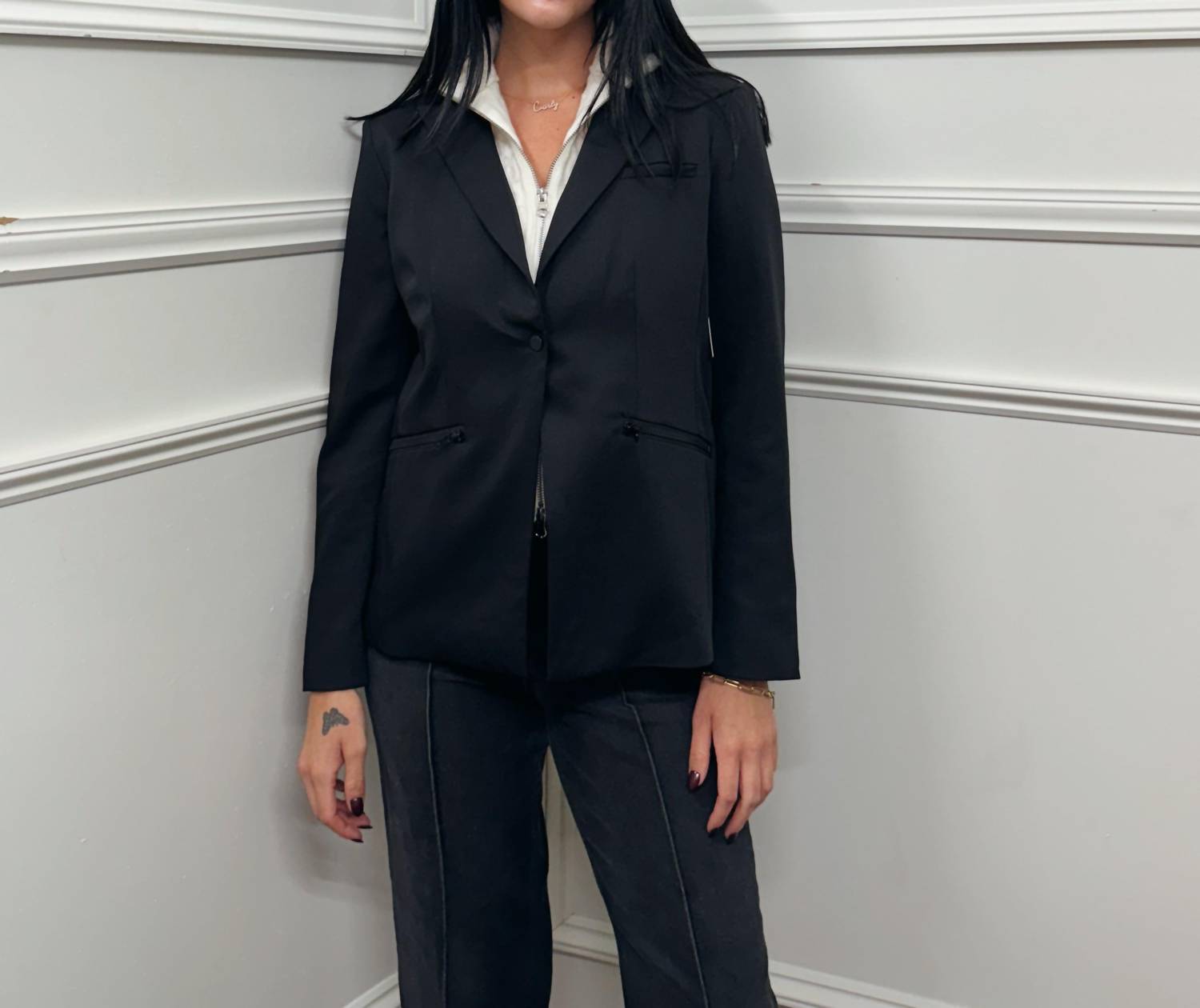 Uma versão elevada do seu blazer clássico favorito. Eleve seu guarda-roupa com o Conjunto Blazer ELAN Sweater, uma peça sofisticada em preto atemporal. Com mangas longas e gola clássica, este conjunto de blazer oferece um visual elegante e elegante. Confeccionado em padronagem sólida e sem fecho, para um estilo despojado, garante versatilidade e conforto. Embora não sejam fornecidas instruções específicas de cuidados, esta peça é essencial para qualquer coleção de blazers.