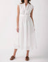 Introducing the Tie Waist Midi Dress by ELAN, a versatile A-line silhouette designed for any engagement with minimalist style. This white dress features cap sleeves and a flattering tie waist, adding a chic touch to your Fall wardrobe. Made from 100% Ramie with convenient pockets, it closes with buttons and is as practical as it is elegant. Care instructions advise hand washing and line drying to maintain its pristine condition.