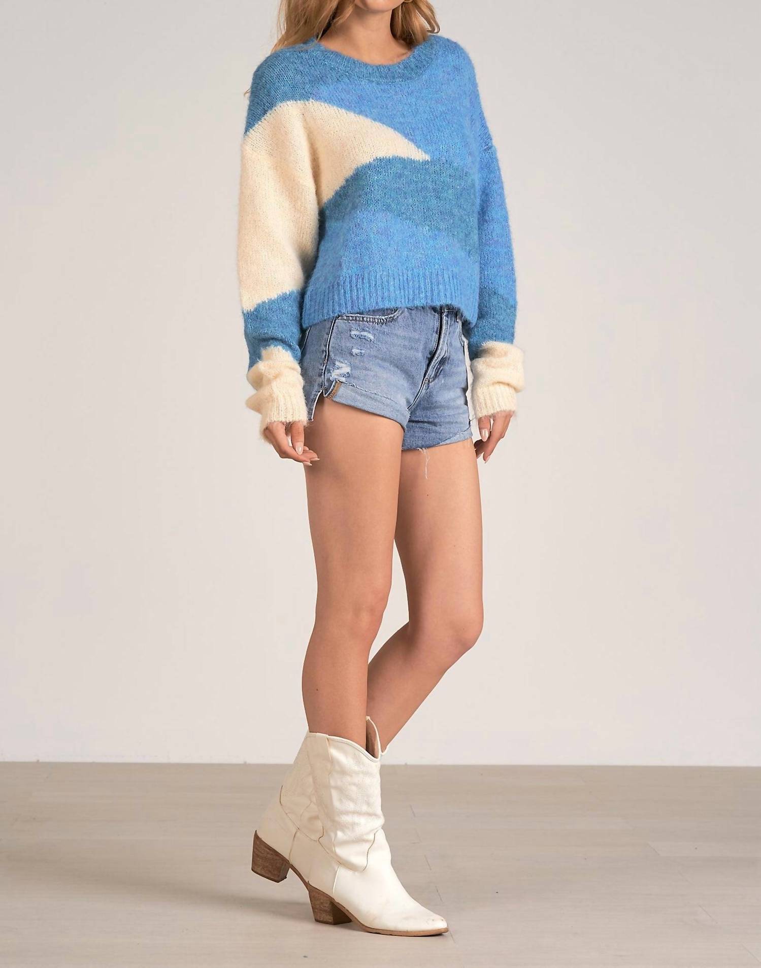 Experimente a combinação perfeita de conforto e estilo com este suéter moderno de gola redonda, projetado para elevar seu guarda-roupa sem esforço. Combine-o com seu jeans e mocassins favoritos para o look perfeito. Apresentamos o suéter de gola redonda Triangles da ELAN, uma adição elegante ao seu guarda-roupa de noite. Este suéter feminino azul possui mangas compridas e gola careca, oferecendo conforto e estilo para ocasiões de outono. Com seu padrão texturizado, é perfeito para adicionar um toque de sofisticação ao seu visual. Fechamento: Puxe para vestir.