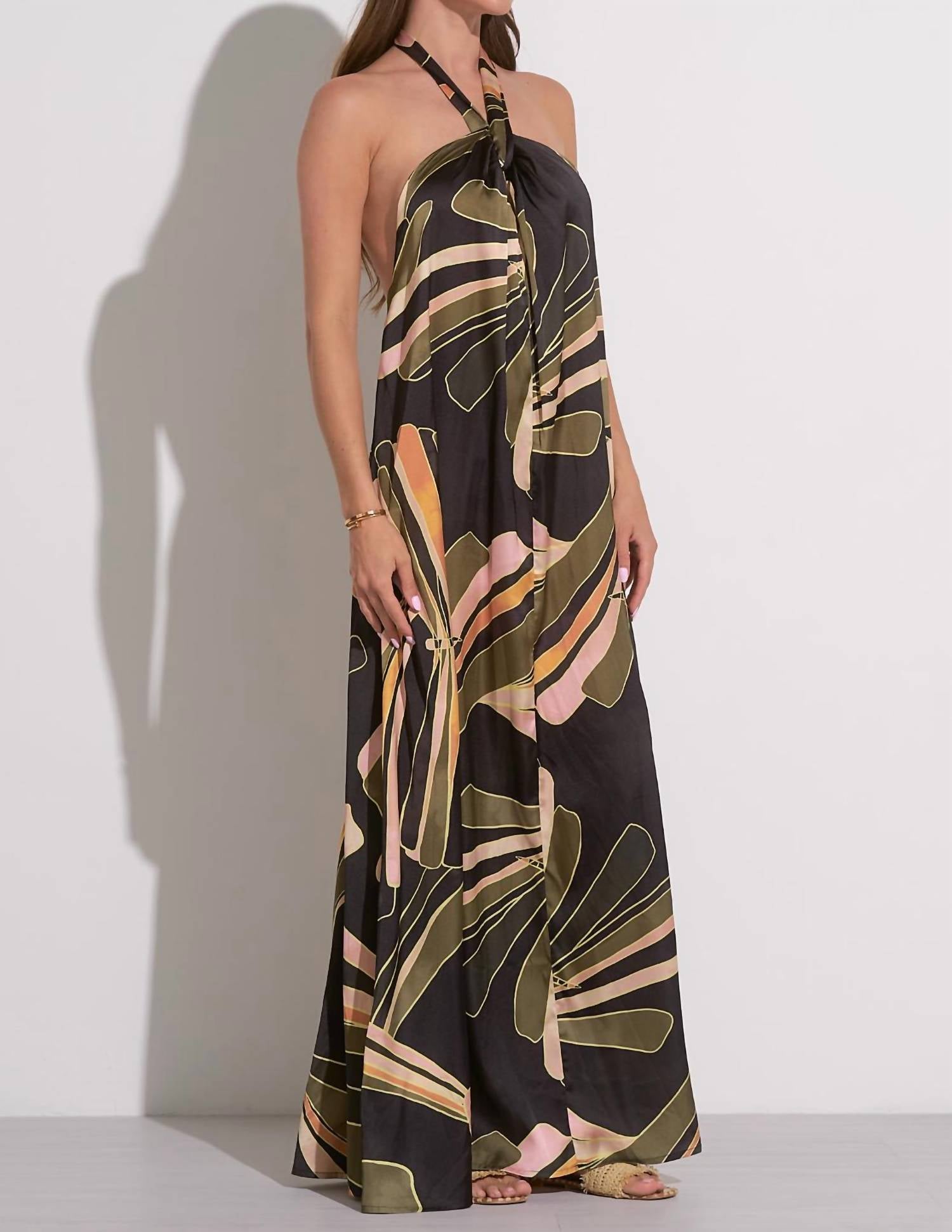 Um vestido longo que é tão fofo quanto confortável. O Vestido Tulum da ELAN é um deslumbrante vestido longo sem mangas com uma estampa floral chique em algodão respirável. Este vestido feminino apresenta um decote halter e uma silhueta transpassada, perfeito para um look refinado e descontraído. Desenhado em um tom preto clássico, garante estilo e conforto com seu fecho pull-on. Os detalhes originais não são especificados e não há instruções de cuidados.