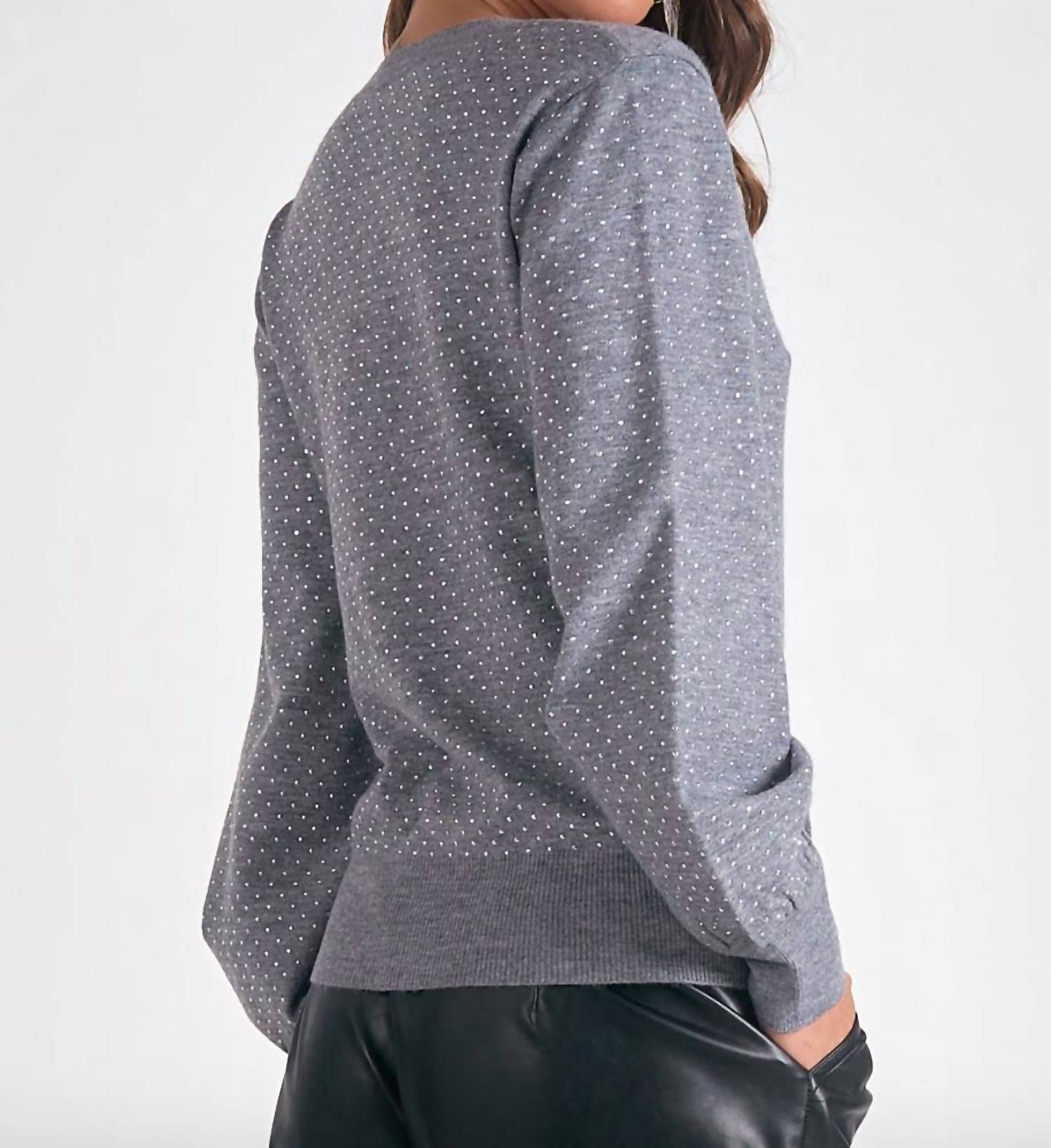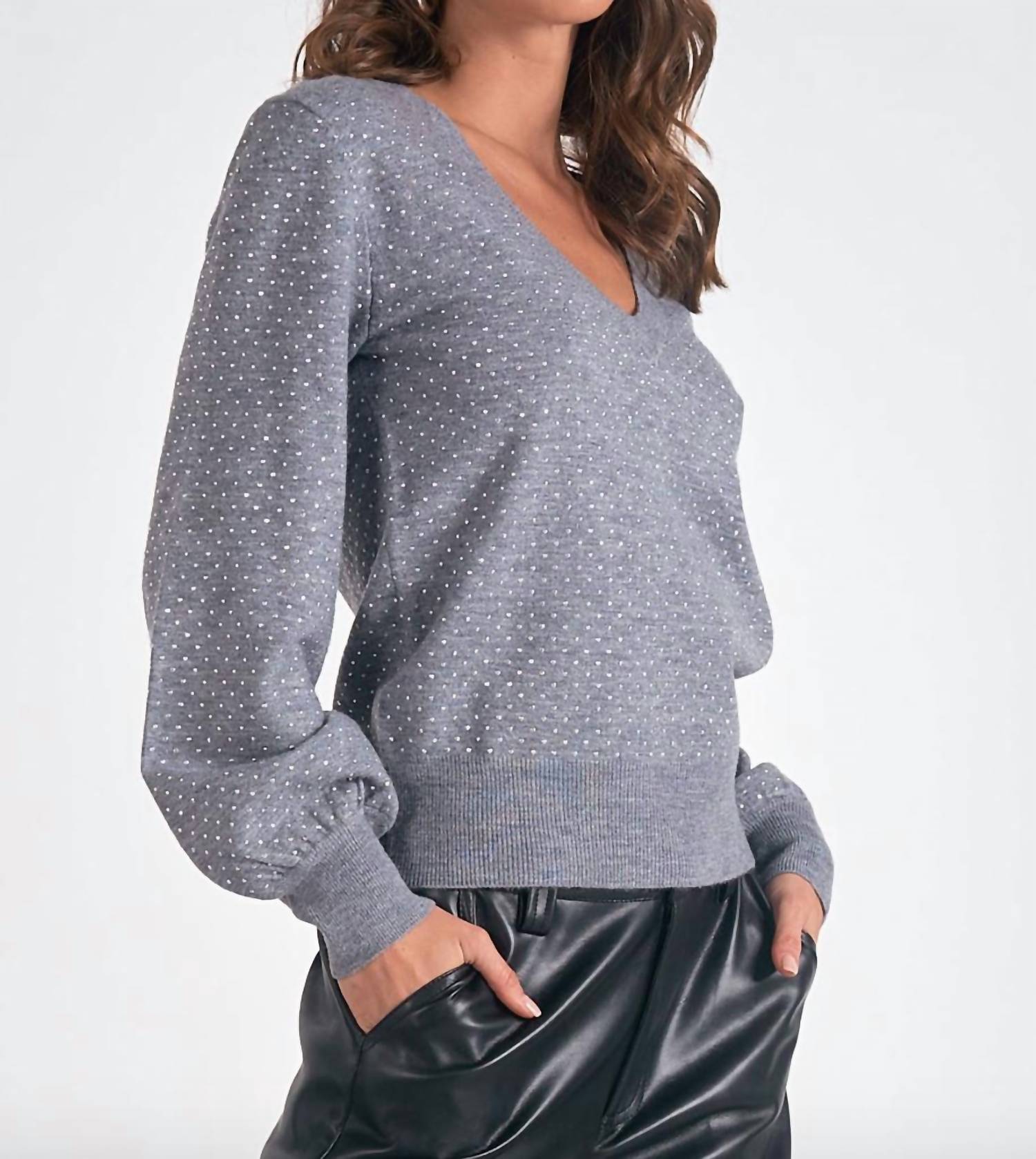 Um suéter atemporal com decote em V que funciona em todas as estações. Apresentamos o suéter com decote em V e strass da ELAN, uma adição elegante ao seu look de noite. Este suéter apresenta um decote em V elegante com uma estampa sólida em cinza elegante. Comprimento da manga: Manga longa. Fecho: Puxe para vestir. Instruções de cuidado: Lavar à mão e secar na horizontal. Perfeito para as noites de primavera.