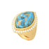 Anel Elemental Gems banhado a ouro 18K 18x11 mm com halo de turquesa e zircônia em cobre azul