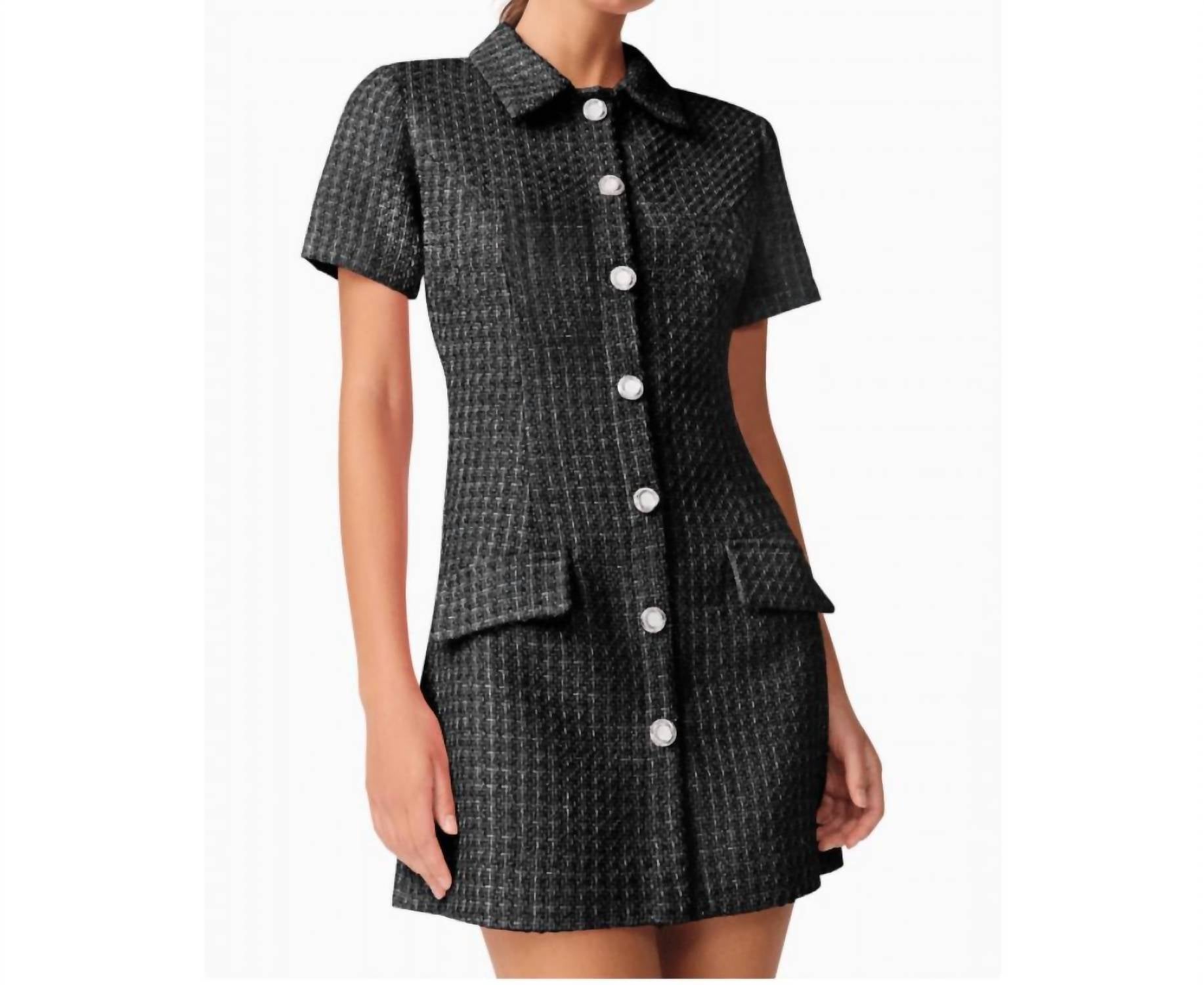 The perfect mini dress for those warmer months. Elevate your summer wardrobe with the ALIA Mini Dress by ELLIATT, a chic choice for holiday parties and special occasions. This A-line dress, perfect for Valentine's Day, in classic black features a stylishly patterned short sleeve design and a sophisticated collar neckline. Crafted from 100% premium polyester, it includes a practical button closure and convenient pockets. Care: Dry clean only.
