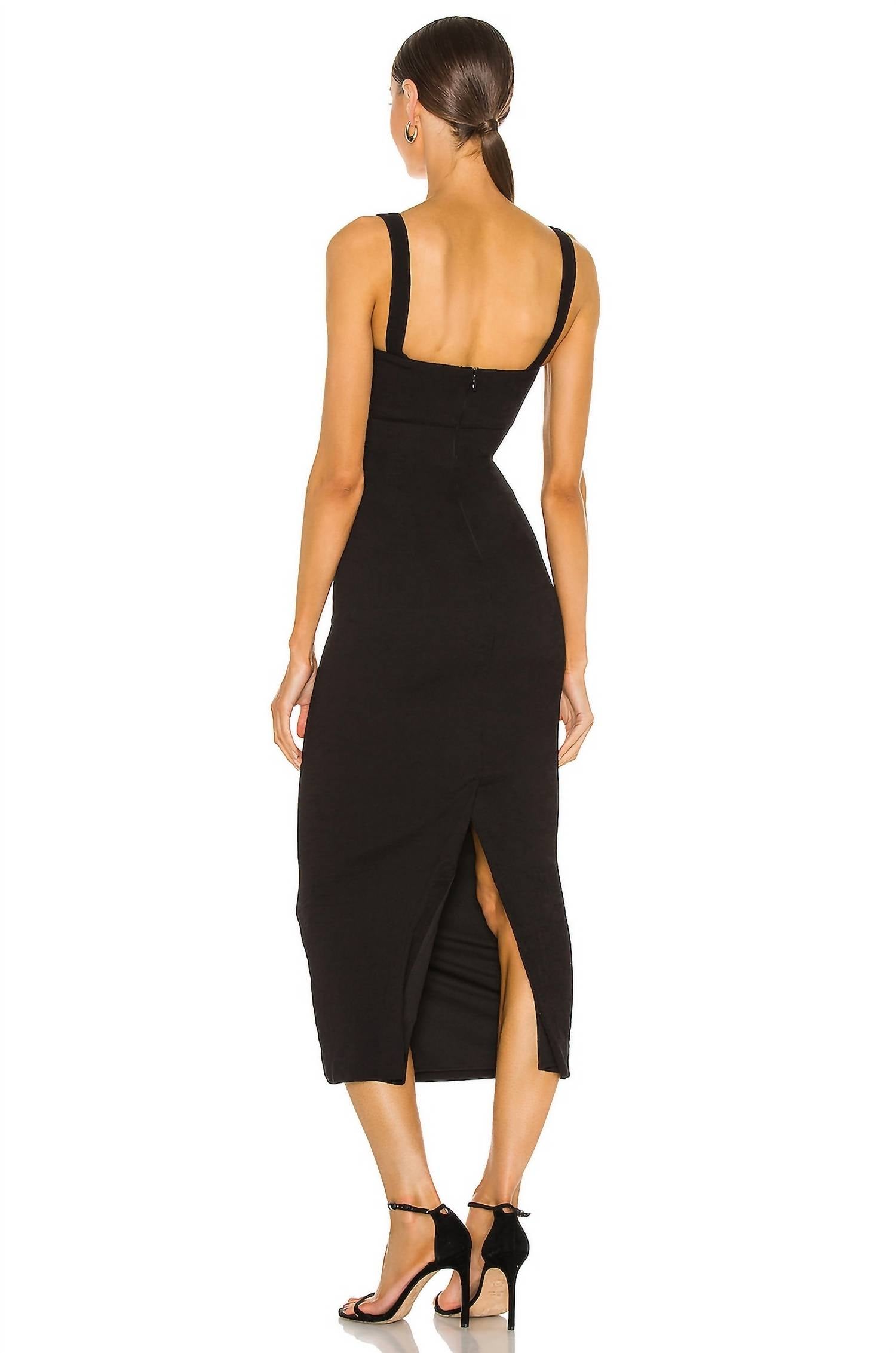Introducing the Rachel Midi Dress by ELLIATT, an elegant choice for black-tie events this spring. This sleeveless dress in classic black features a sweetheart neckline with adjustable shoulder straps, enhancing its shift silhouette. Made from 98% polyester and 2% spandex, it showcases a cinched design at the bust with a front cut-out in mid-weight ribbed jersey fabric. Closure is a hidden back zipper, and it is recommended to hand wash.